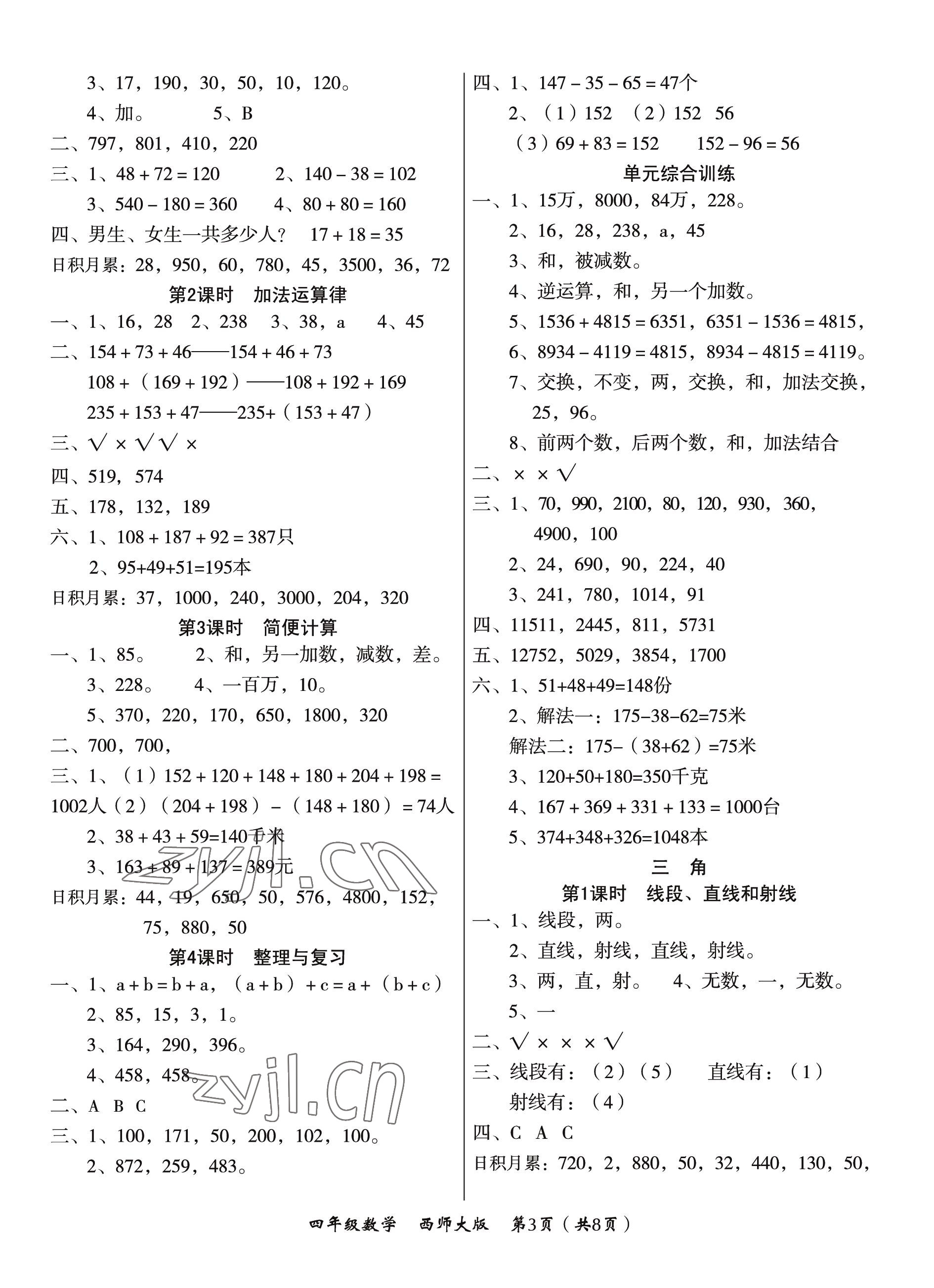 注:目前有些书本章节名称可能整理的还不是很完善,但都是按照顺序排列的,请同学们按照顺序仔细查找。练习册 2022年文博士高效课堂四年级数学上册西师大版 答案主要是用来给同学们做完题方便对答案用的,请勿直接抄袭。