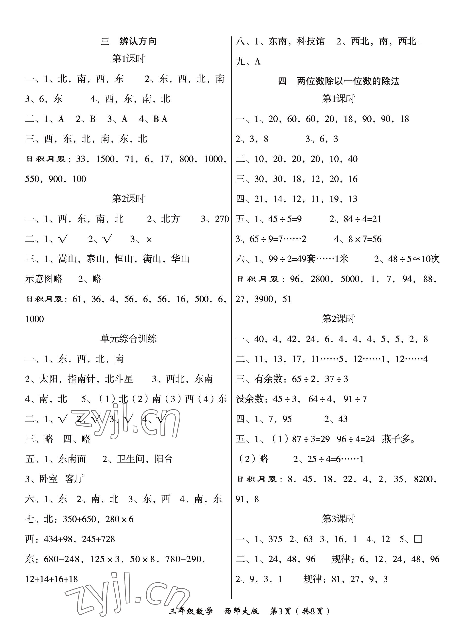注:目前有些书本章节名称可能整理的还不是很完善,但都是按照顺序排列的,请同学们按照顺序仔细查找。练习册 2022年文博士高效课堂三年级数学上册西师大版 答案主要是用来给同学们做完题方便对答案用的,请勿直接抄袭。