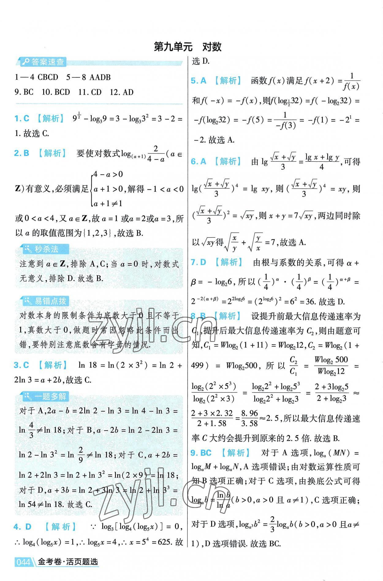 注:目前有些书本章节名称可能整理的还不是很完善,但都是按照顺序排列的,请同学们按照顺序仔细查找。练习册 2022年金考卷活页题选高中数学必修第一册人教版 答案主要是用来给同学们做完题方便对答案用的,请勿直接抄袭。