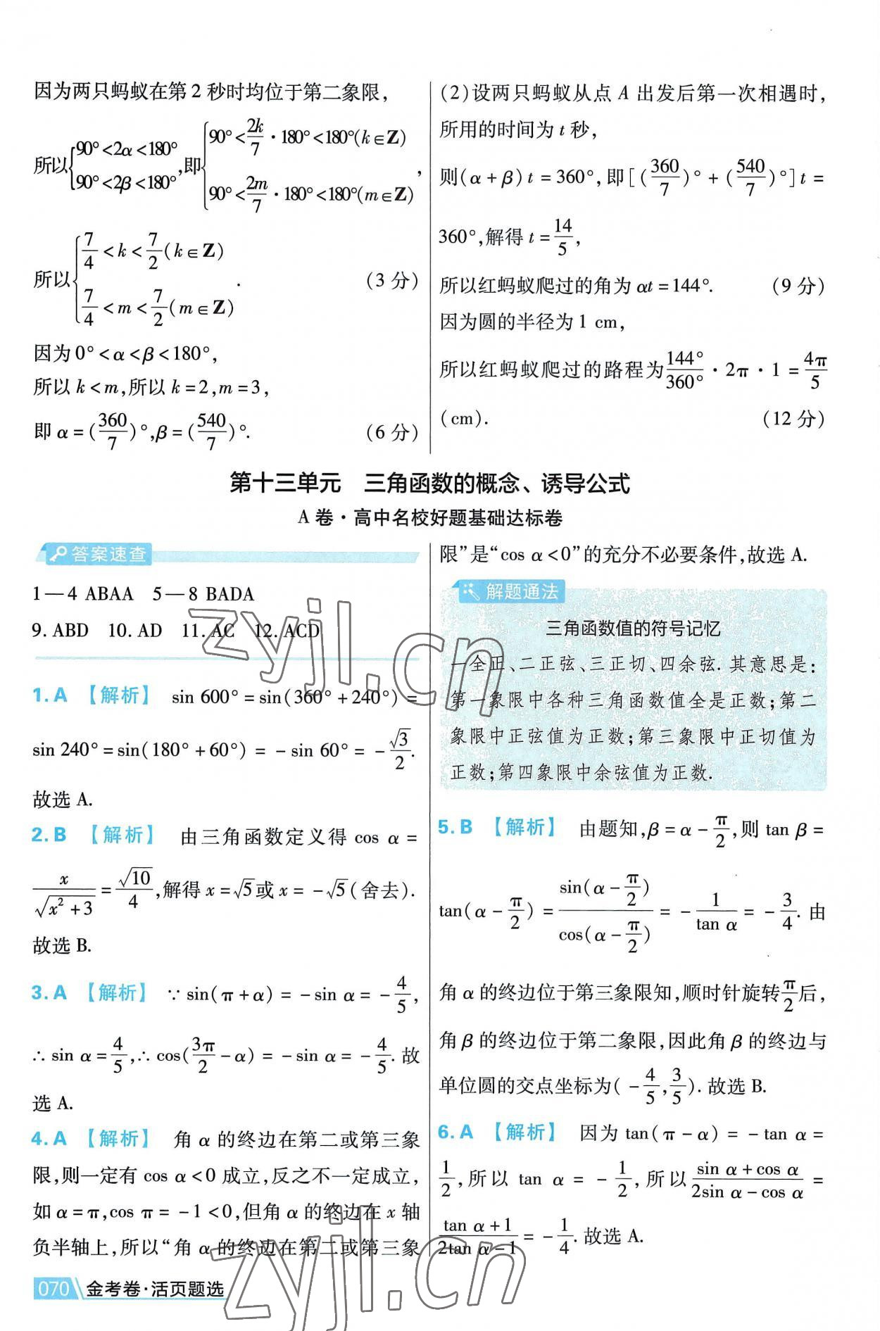 注:目前有些书本章节名称可能整理的还不是很完善,但都是按照顺序排列的,请同学们按照顺序仔细查找。练习册 2022年金考卷活页题选高中数学必修第一册人教版 答案主要是用来给同学们做完题方便对答案用的,请勿直接抄袭。