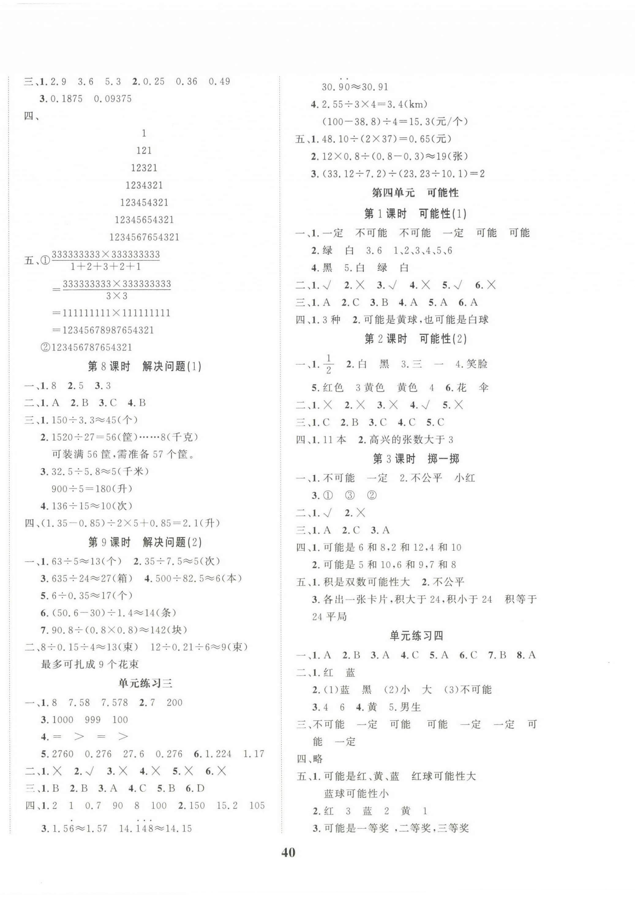 注:目前有些书本章节名称可能整理的还不是很完善,但都是按照顺序排列的,请同学们按照顺序仔细查找。练习册 2022年尖兵题典期末练五年级数学上册人教版 答案主要是用来给同学们做完题方便对答案用的,请勿直接抄袭。