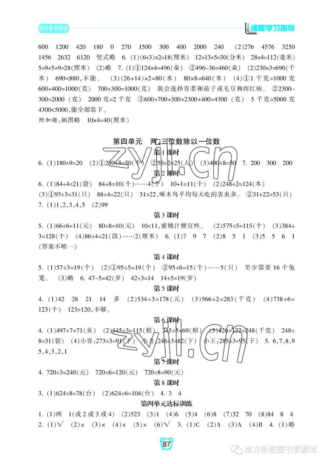 2022年新课程学习指导南方出版社三年级数学上册苏教版