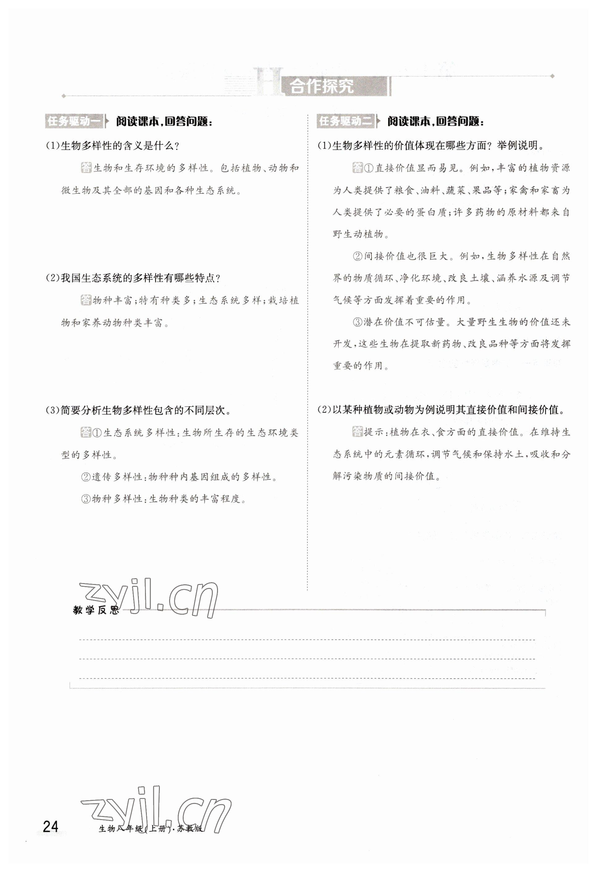 2022年金太阳导学测评八年级生物上册苏教版