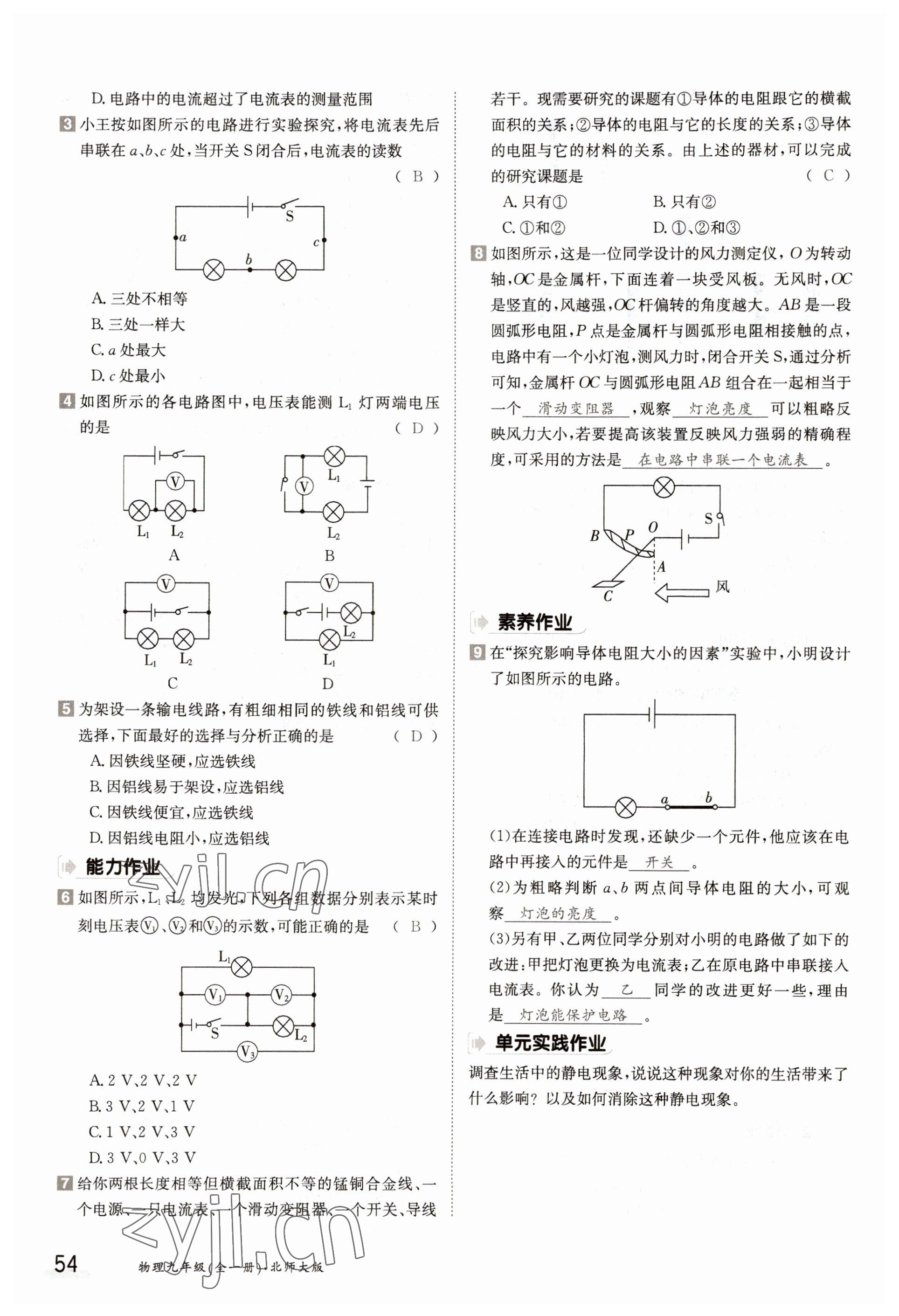 注:目前有些书本章节名称可能整理的还不是很完善,但都是按照顺序排列的,请同学们按照顺序仔细查找。练习册 2022年三段六步导学案九年级物理全一册北师大版 答案主要是用来给同学们做完题方便对答案用的,请勿直接抄袭。