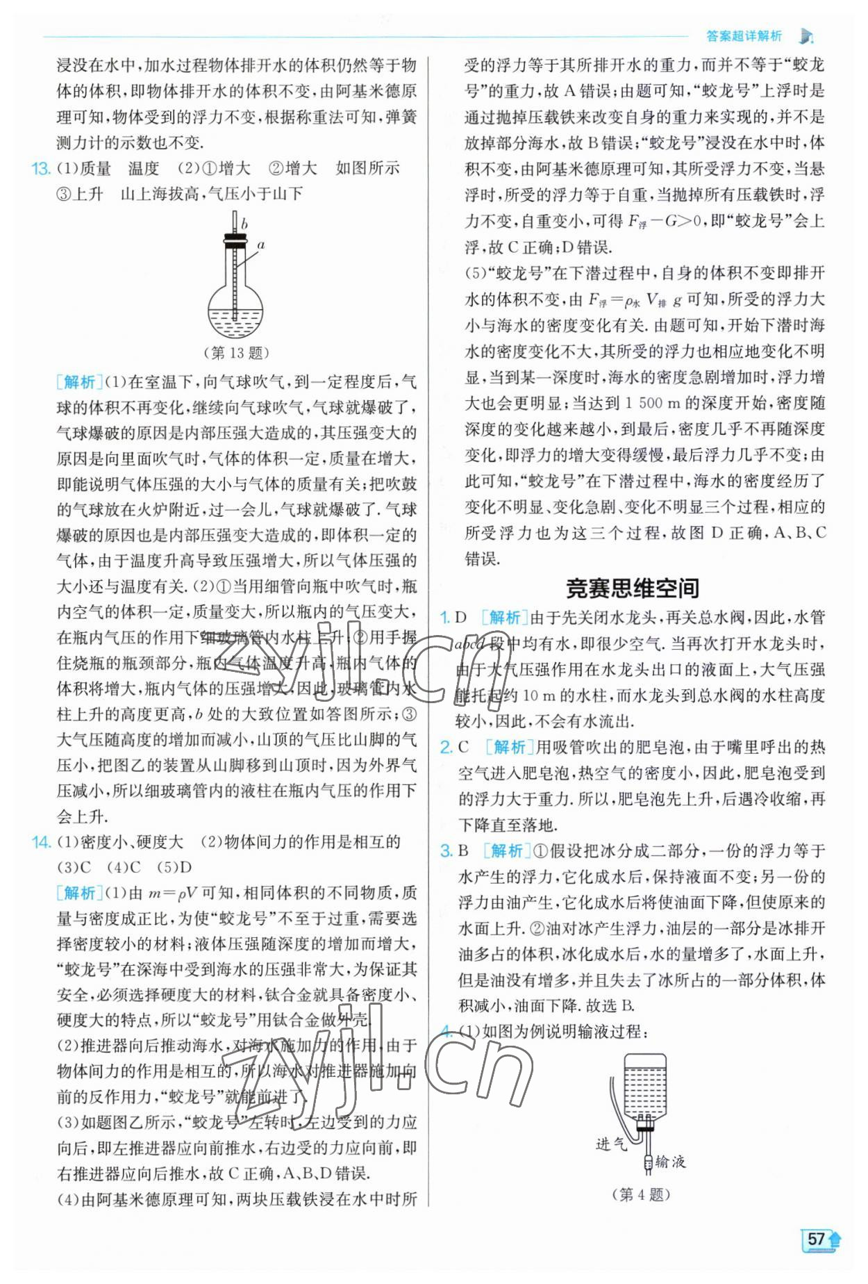 注:目前有些书本章节名称可能整理的还不是很完善,但都是按照顺序排列的,请同学们按照顺序仔细查找。练习册 2023年实验班提优训练八年级物理下册苏科版江苏专版 答案主要是用来给同学们做完题方便对答案用的,请勿直接抄袭。