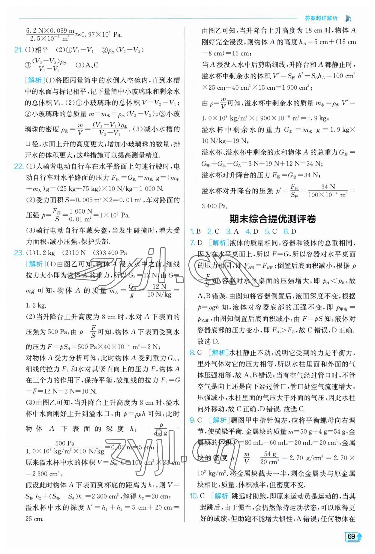 注:目前有些书本章节名称可能整理的还不是很完善,但都是按照顺序排列的,请同学们按照顺序仔细查找。练习册 2023年实验班提优训练八年级物理下册苏科版江苏专版 答案主要是用来给同学们做完题方便对答案用的,请勿直接抄袭。