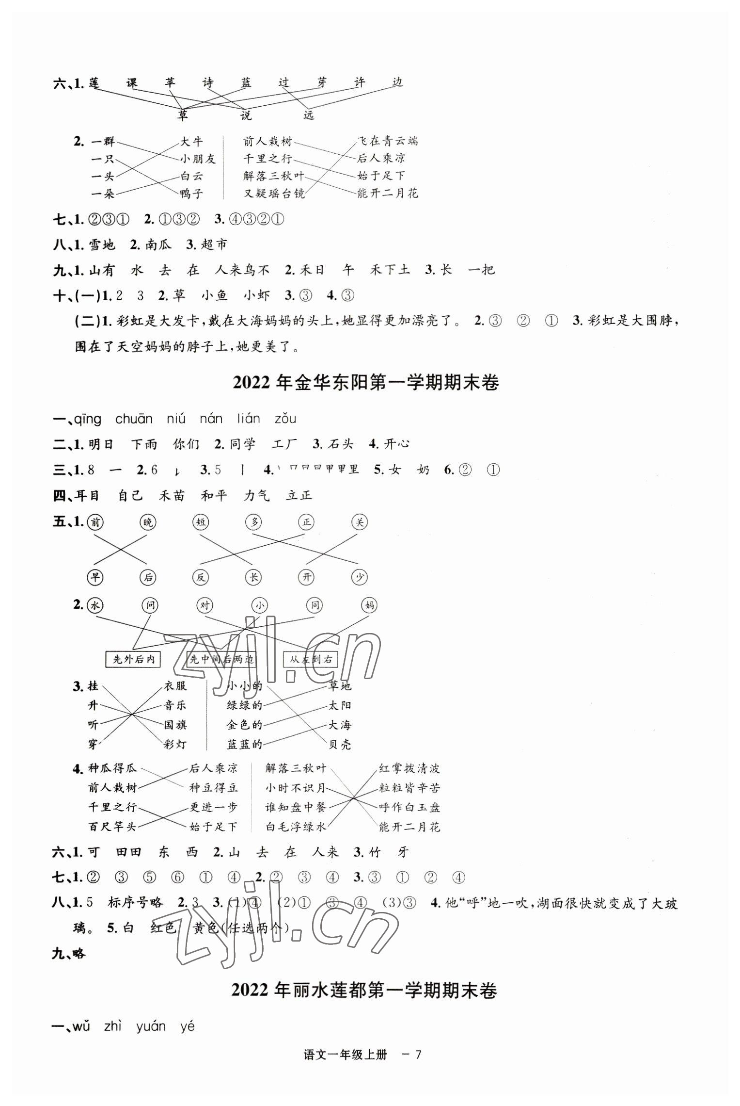 2022年浙江各地期末迎考卷一年级语文上册人教版