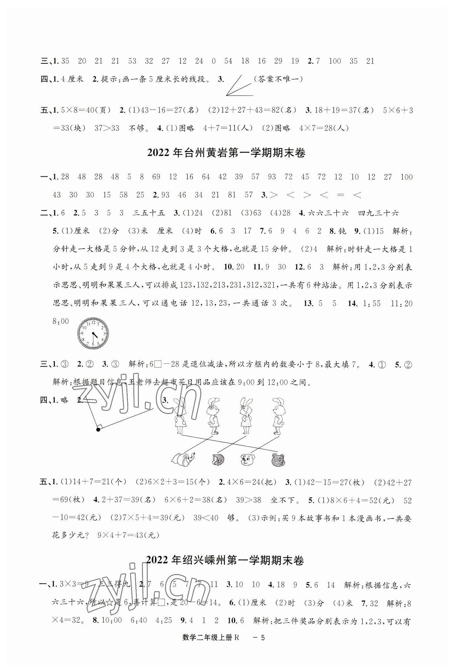 2022年浙江各地期末迎考卷二年级数学上册人教版