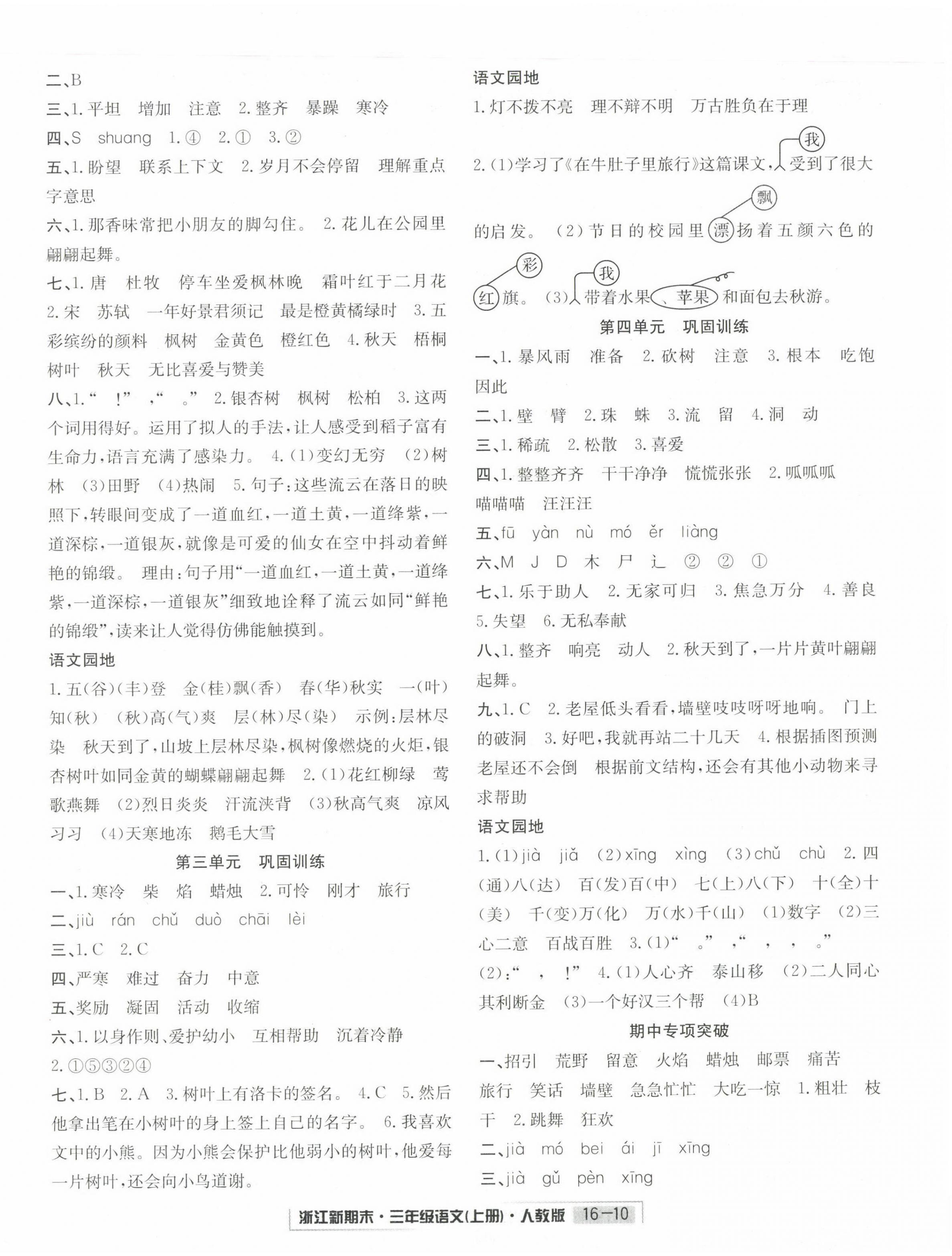 注:目前有些书本章节名称可能整理的还不是很完善,但都是按照顺序排列的,请同学们按照顺序仔细查找。练习册 2022年励耘书业浙江新期末三年级语文上册人教版 答案主要是用来给同学们做完题方便对答案用的,请勿直接抄袭。