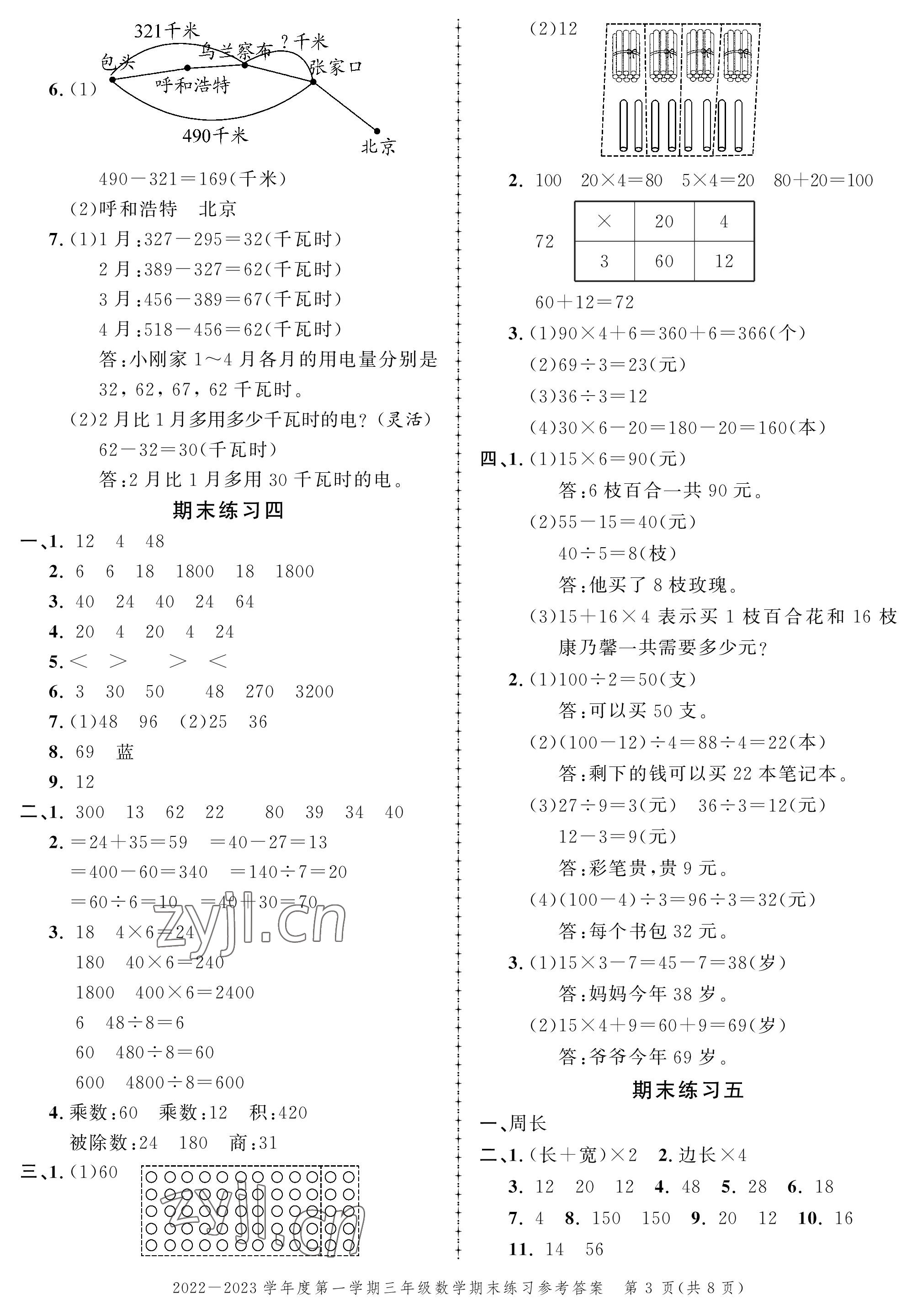 注:目前有些书本章节名称可能整理的还不是很完善,但都是按照顺序排列的,请同学们按照顺序仔细查找。练习册 2022年创新作业同步练习期末复习试卷三年级数学上册北师大版 答案主要是用来给同学们做完题方便对答案用的,请勿直接抄袭。