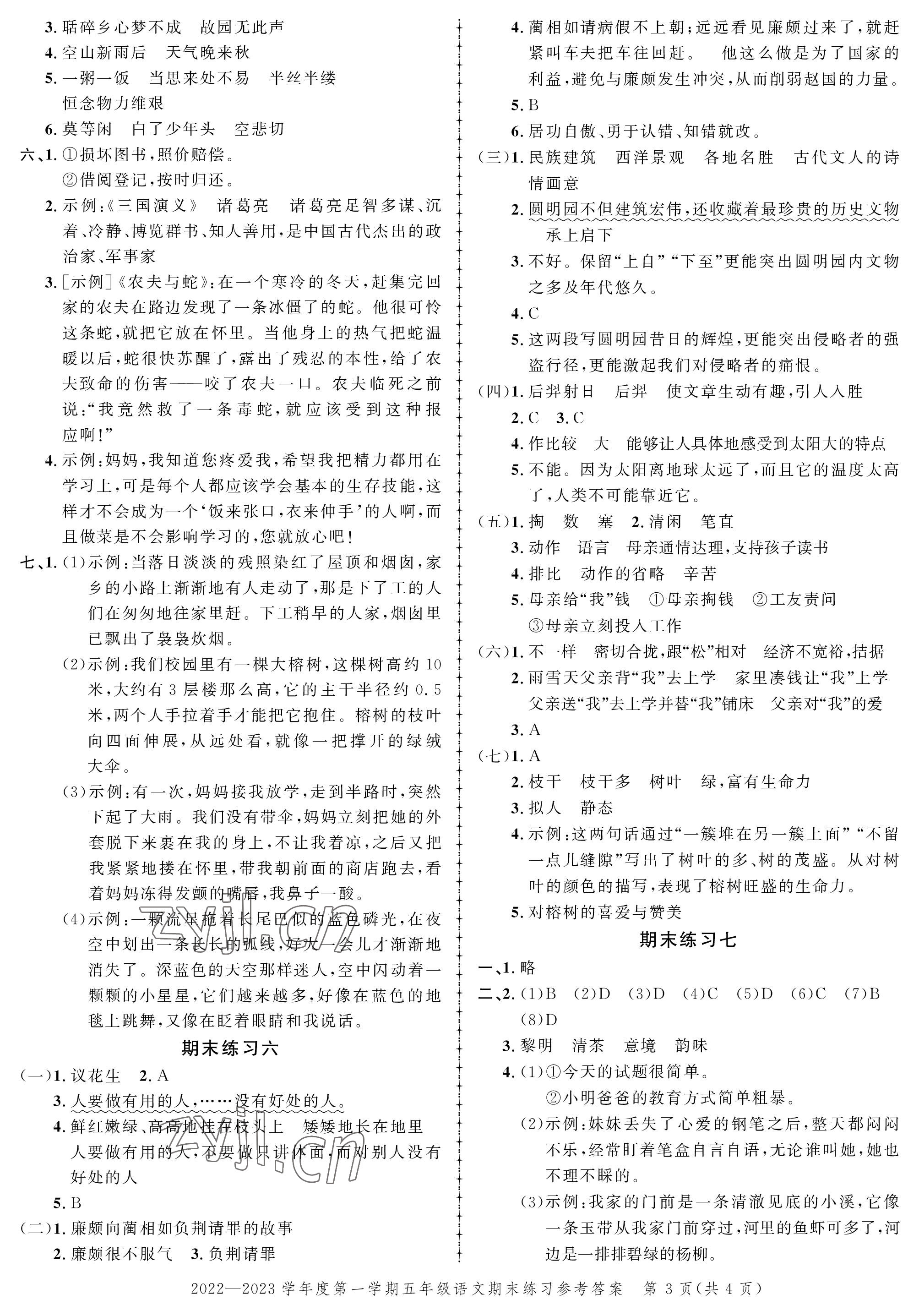 注:目前有些书本章节名称可能整理的还不是很完善,但都是按照顺序排列的,请同学们按照顺序仔细查找。练习册 2022年创新作业同步练习期末复习试卷五年级语文上册人教版 答案主要是用来给同学们做完题方便对答案用的,请勿直接抄袭。