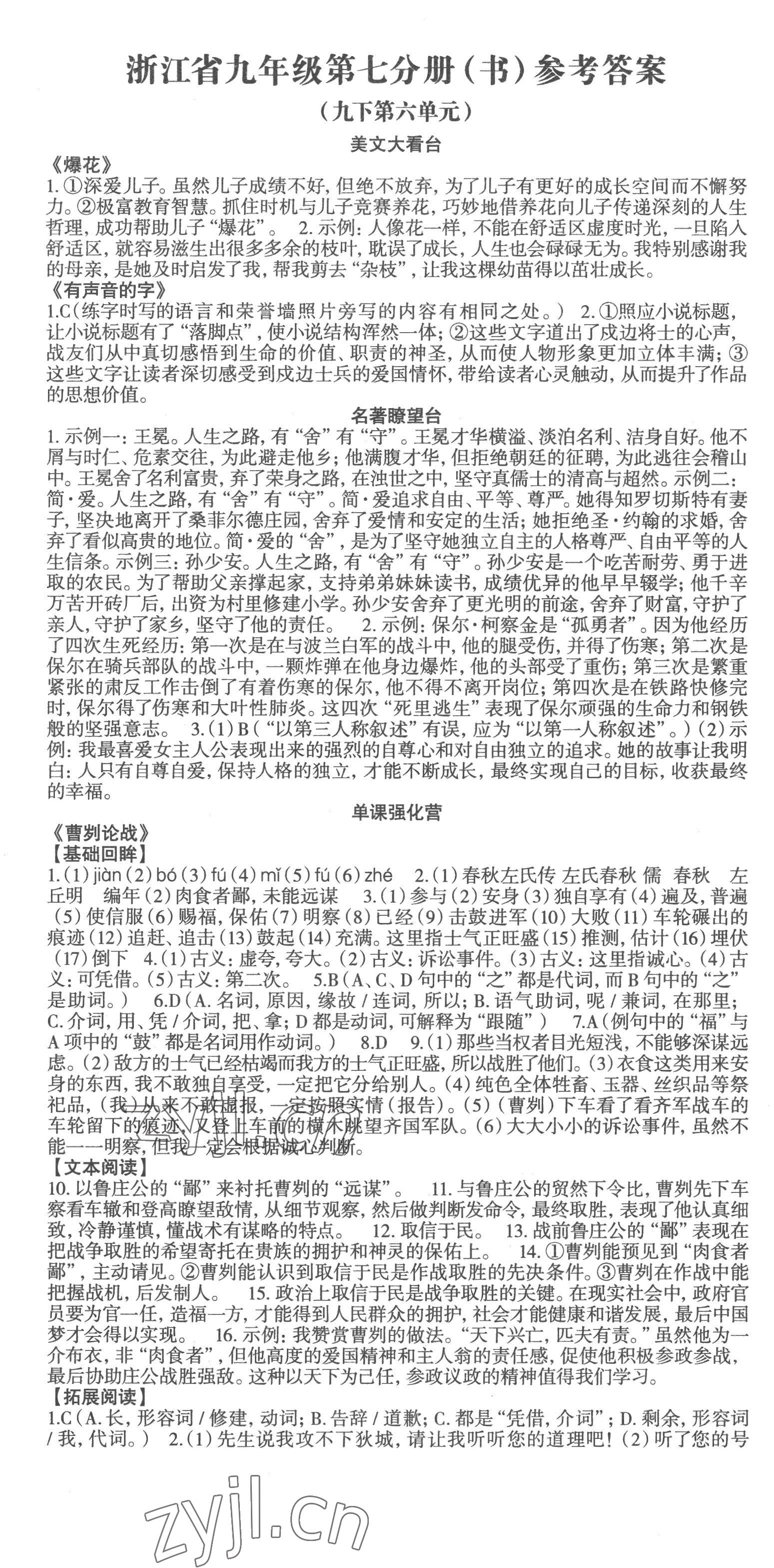 注:目前有些书本章节名称可能整理的还不是很完善,但都是按照顺序排列的,请同学们按照顺序仔细查找。练习册 2022年智慧语文读练测九年级语文人教版 答案主要是用来给同学们做完题方便对答案用的,请勿直接抄袭。