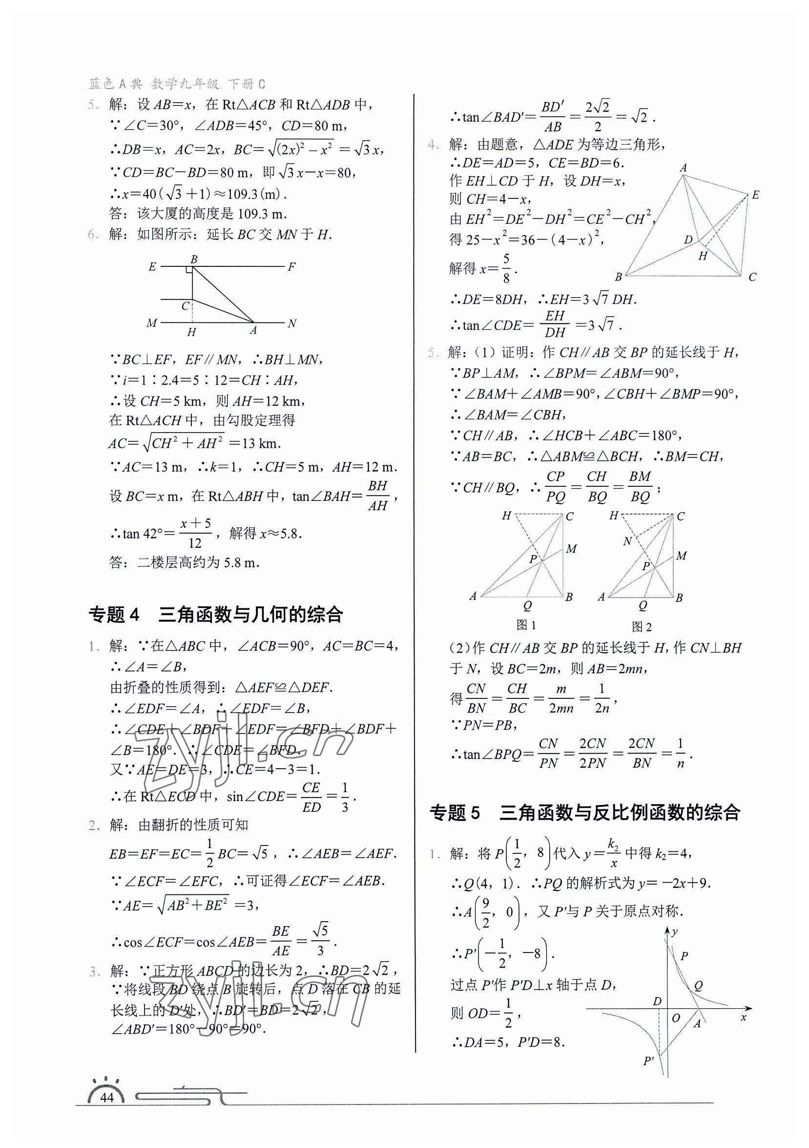 注:目前有些书本章节名称可能整理的还不是很完善,但都是按照顺序排列的,请同学们按照顺序仔细查找。练习册 2023年蓝色A典九年级数学下册北师大版 答案主要是用来给同学们做完题方便对答案用的,请勿直接抄袭。
