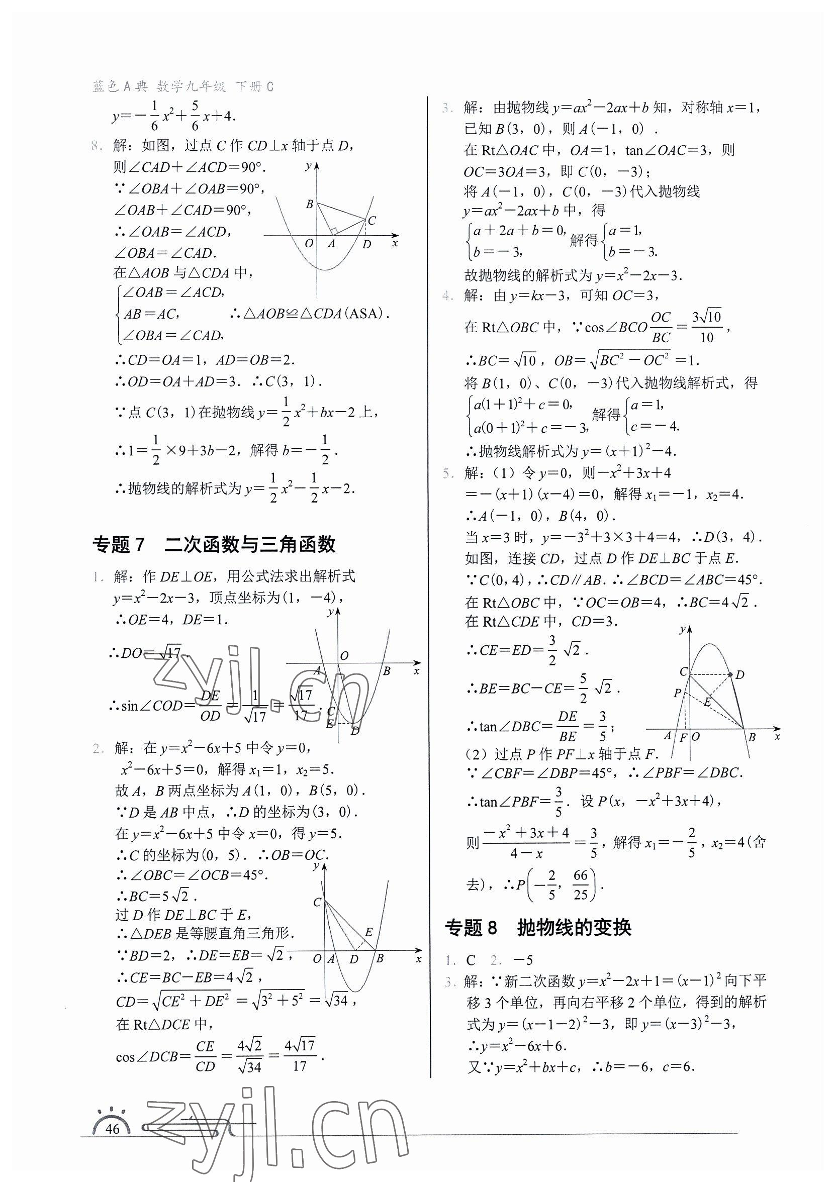 注:目前有些书本章节名称可能整理的还不是很完善,但都是按照顺序排列的,请同学们按照顺序仔细查找。练习册 2023年蓝色A典九年级数学下册北师大版 答案主要是用来给同学们做完题方便对答案用的,请勿直接抄袭。