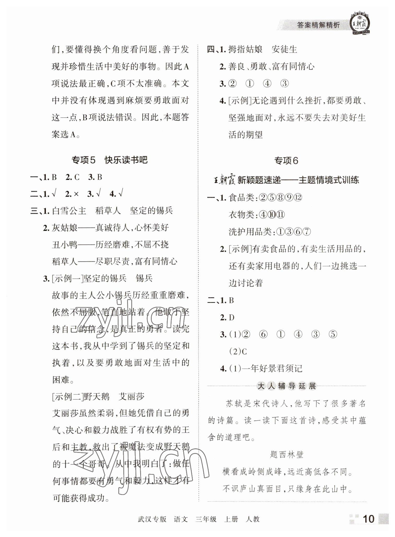 注:目前有些书本章节名称可能整理的还不是很完善,但都是按照顺序排列的,请同学们按照顺序仔细查找。练习册 2022年王朝霞期末真题精编三年级语文上册人教版武汉专版 答案主要是用来给同学们做完题方便对答案用的,请勿直接抄袭。