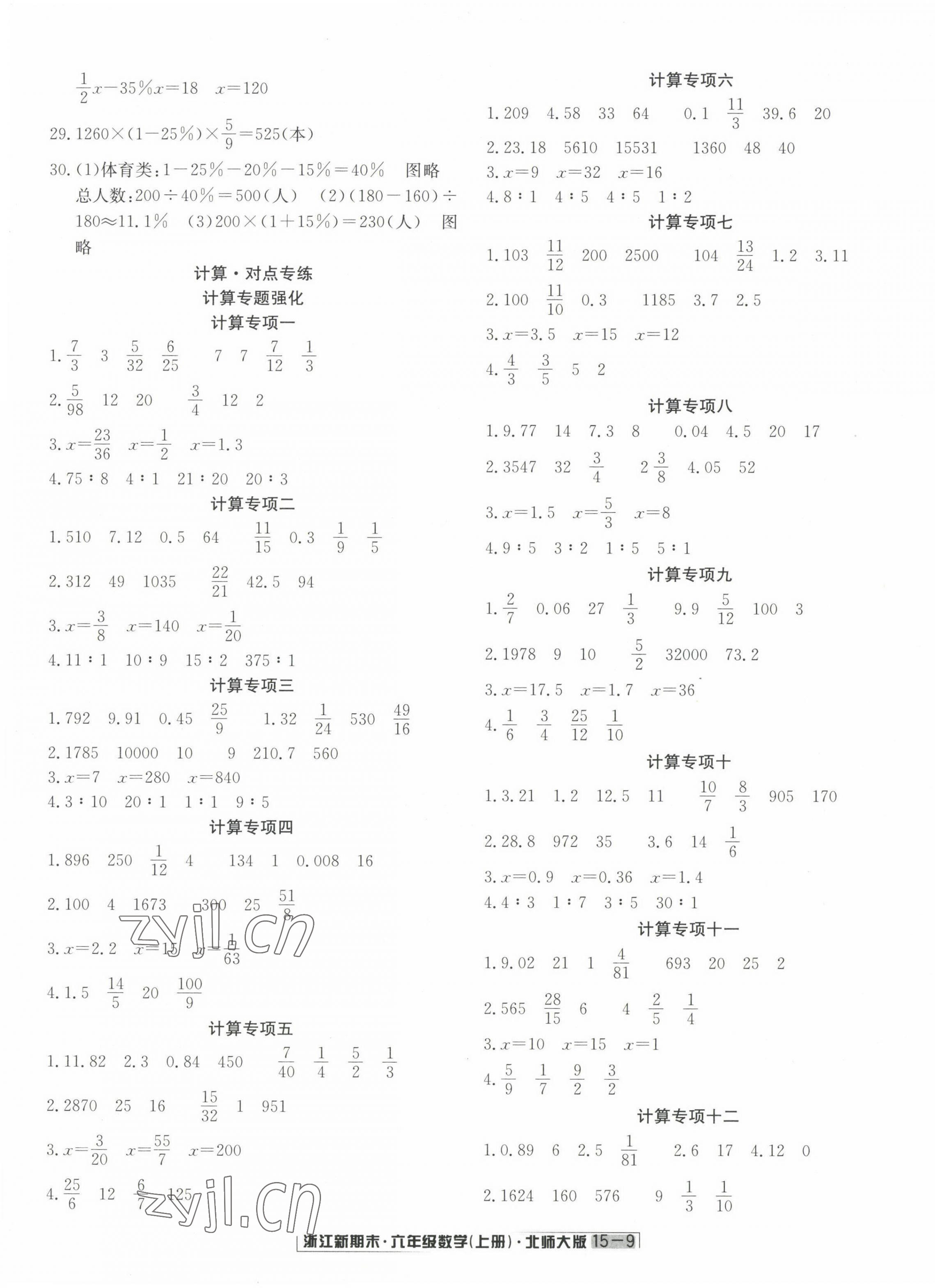 注:目前有些书本章节名称可能整理的还不是很完善,但都是按照顺序排列的,请同学们按照顺序仔细查找。练习册 2022年励耘书业浙江新期末六年级数学上册北师大版 答案主要是用来给同学们做完题方便对答案用的,请勿直接抄袭。