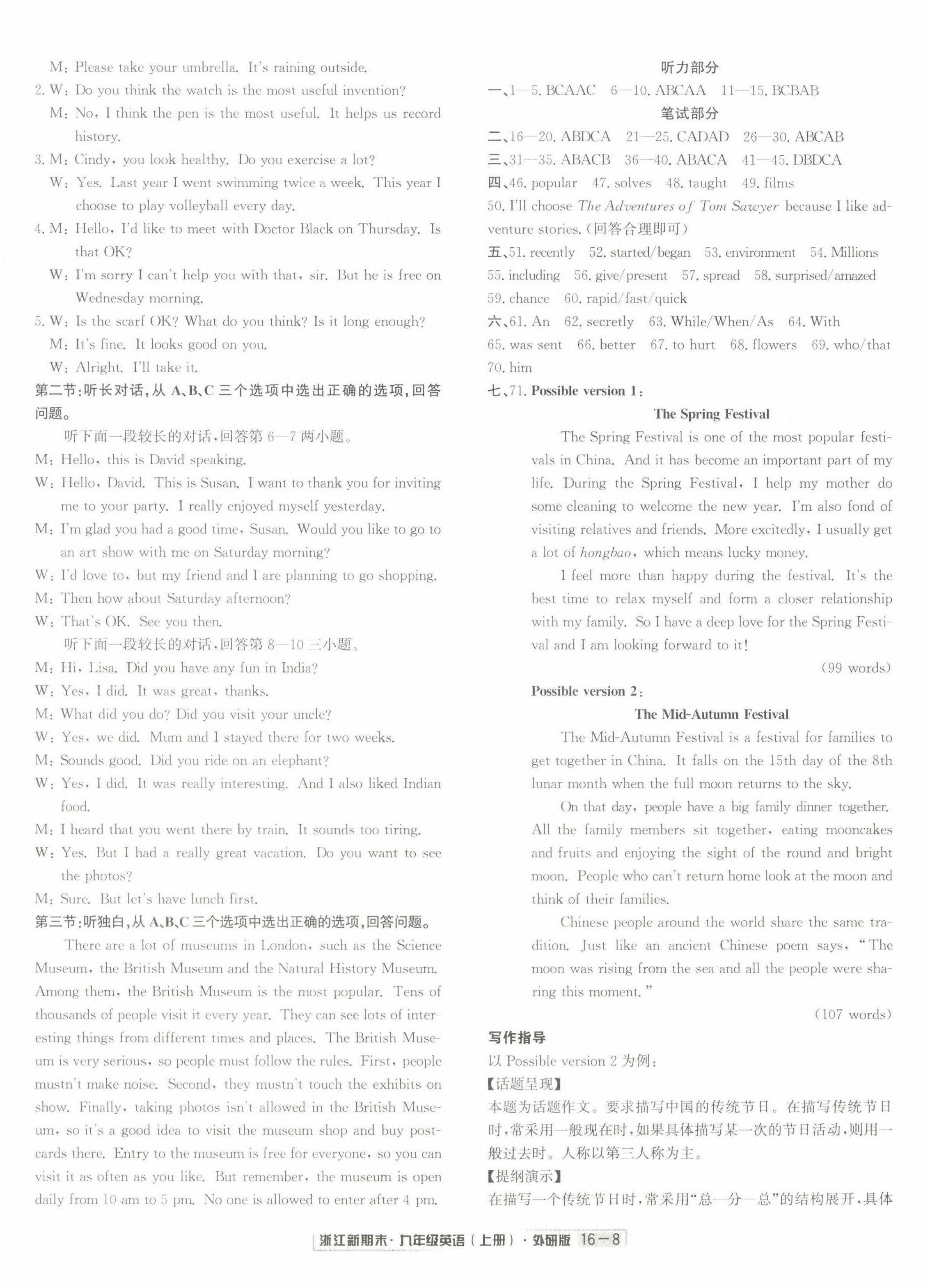 注:目前有些书本章节名称可能整理的还不是很完善,但都是按照顺序排列的,请同学们按照顺序仔细查找。练习册 2022年励耘书业浙江新期末九年级英语上册外研版 答案主要是用来给同学们做完题方便对答案用的,请勿直接抄袭。