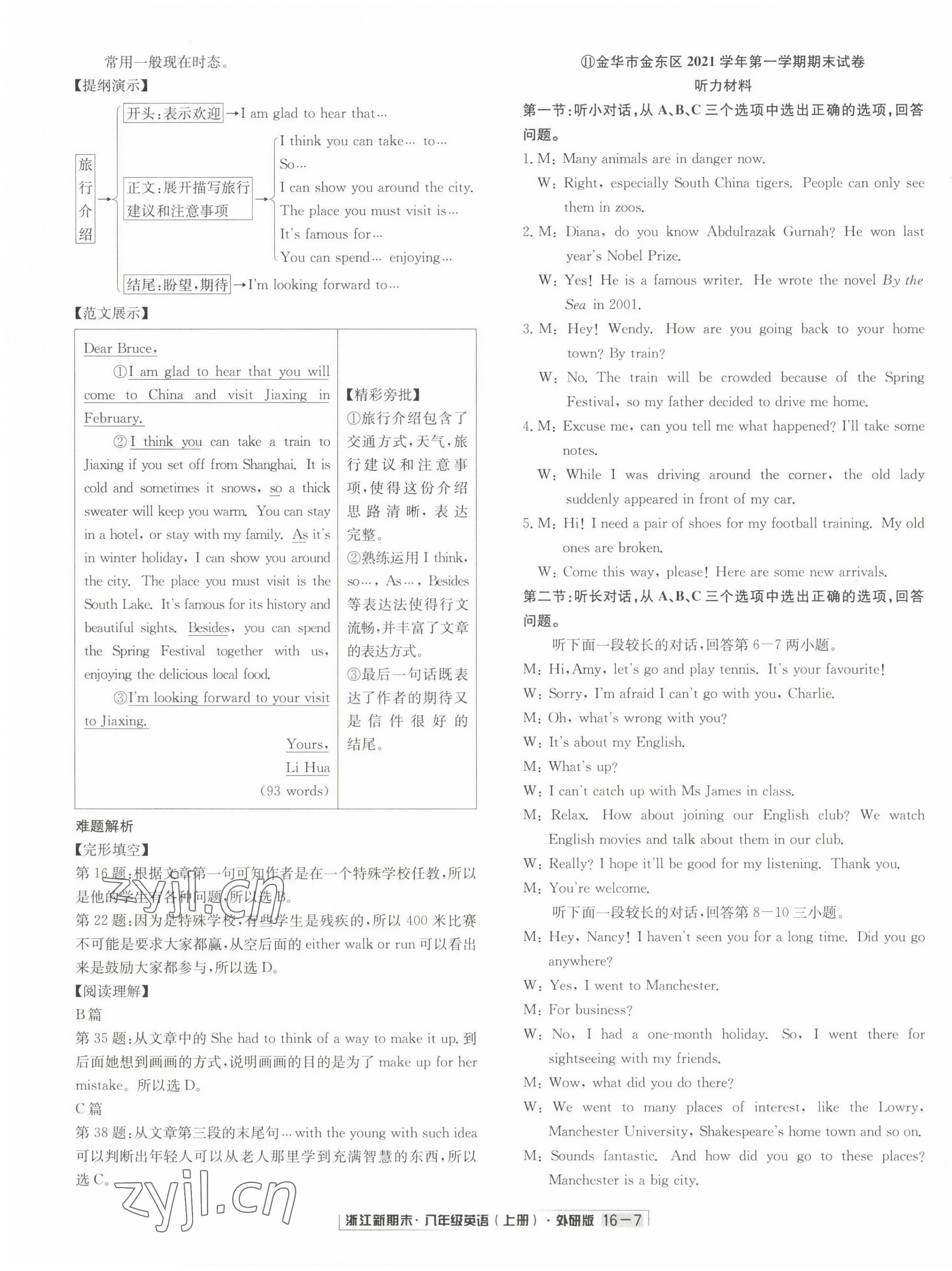 注:目前有些书本章节名称可能整理的还不是很完善,但都是按照顺序排列的,请同学们按照顺序仔细查找。练习册 2022年励耘书业浙江新期末八年级英语上册外研版 答案主要是用来给同学们做完题方便对答案用的,请勿直接抄袭。