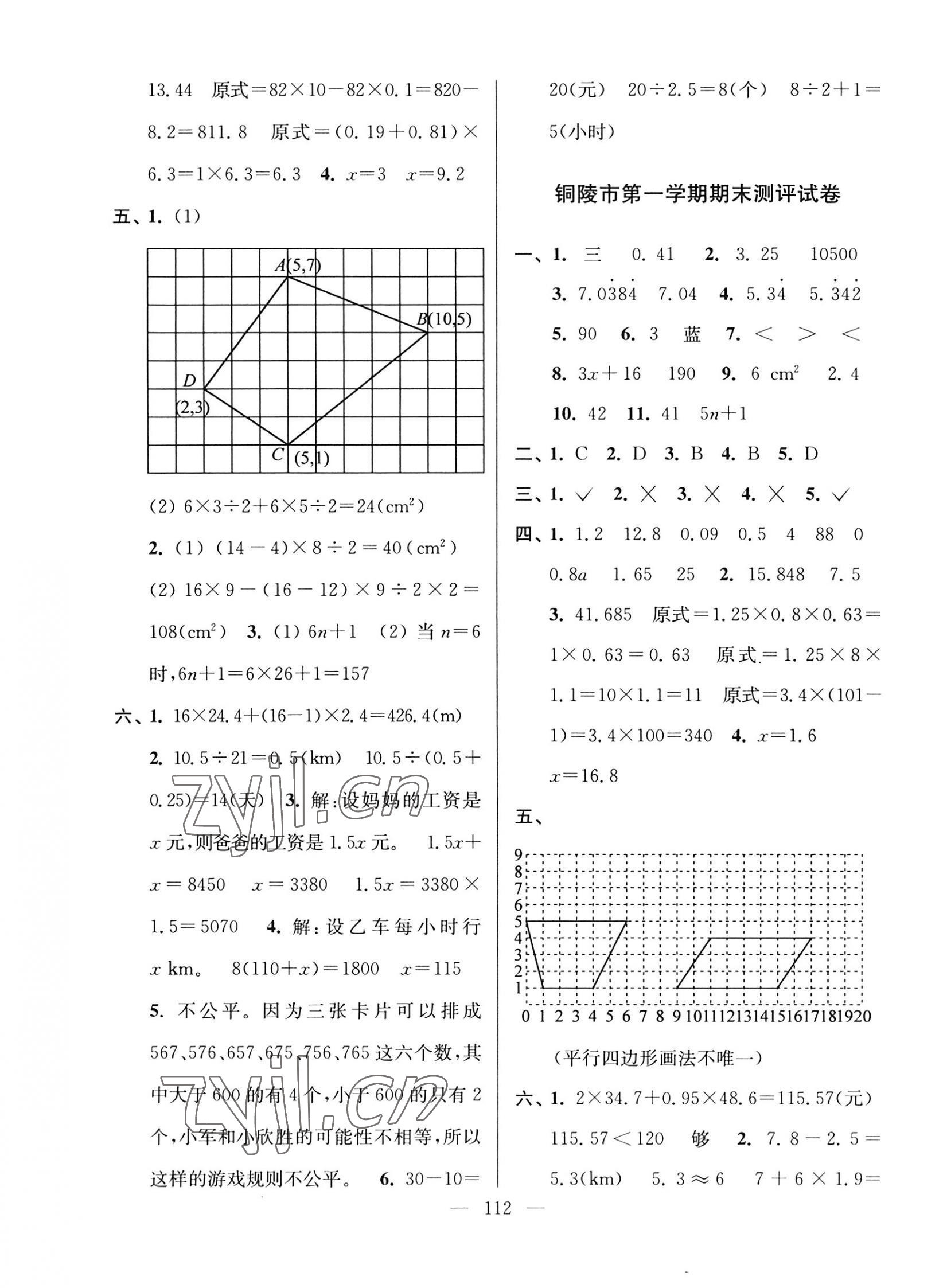 注:目前有些书本章节名称可能整理的还不是很完善,但都是按照顺序排列的,请同学们按照顺序仔细查找。练习册 2022年超能学典各地期末试卷精选五年级数学上册人教版安徽专版 答案主要是用来给同学们做完题方便对答案用的,请勿直接抄袭。