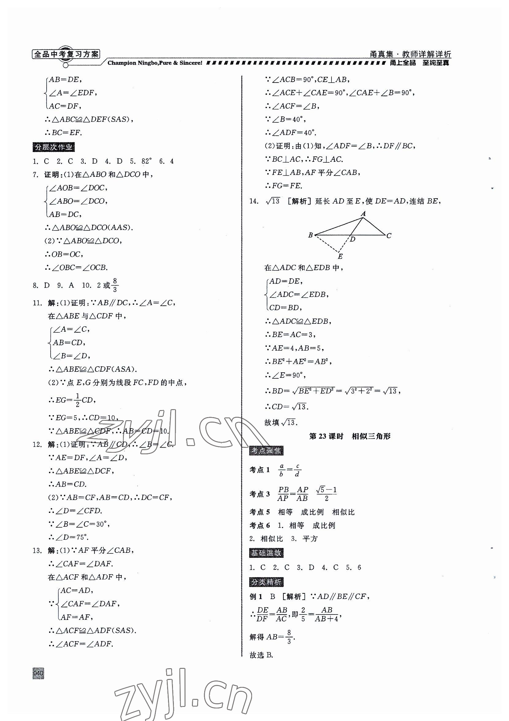 注:目前有些书本章节名称可能整理的还不是很完善,但都是按照顺序排列的,请同学们按照顺序仔细查找。练习册 2023年全品中考复习方案甬真集中考数学 答案主要是用来给同学们做完题方便对答案用的,请勿直接抄袭。