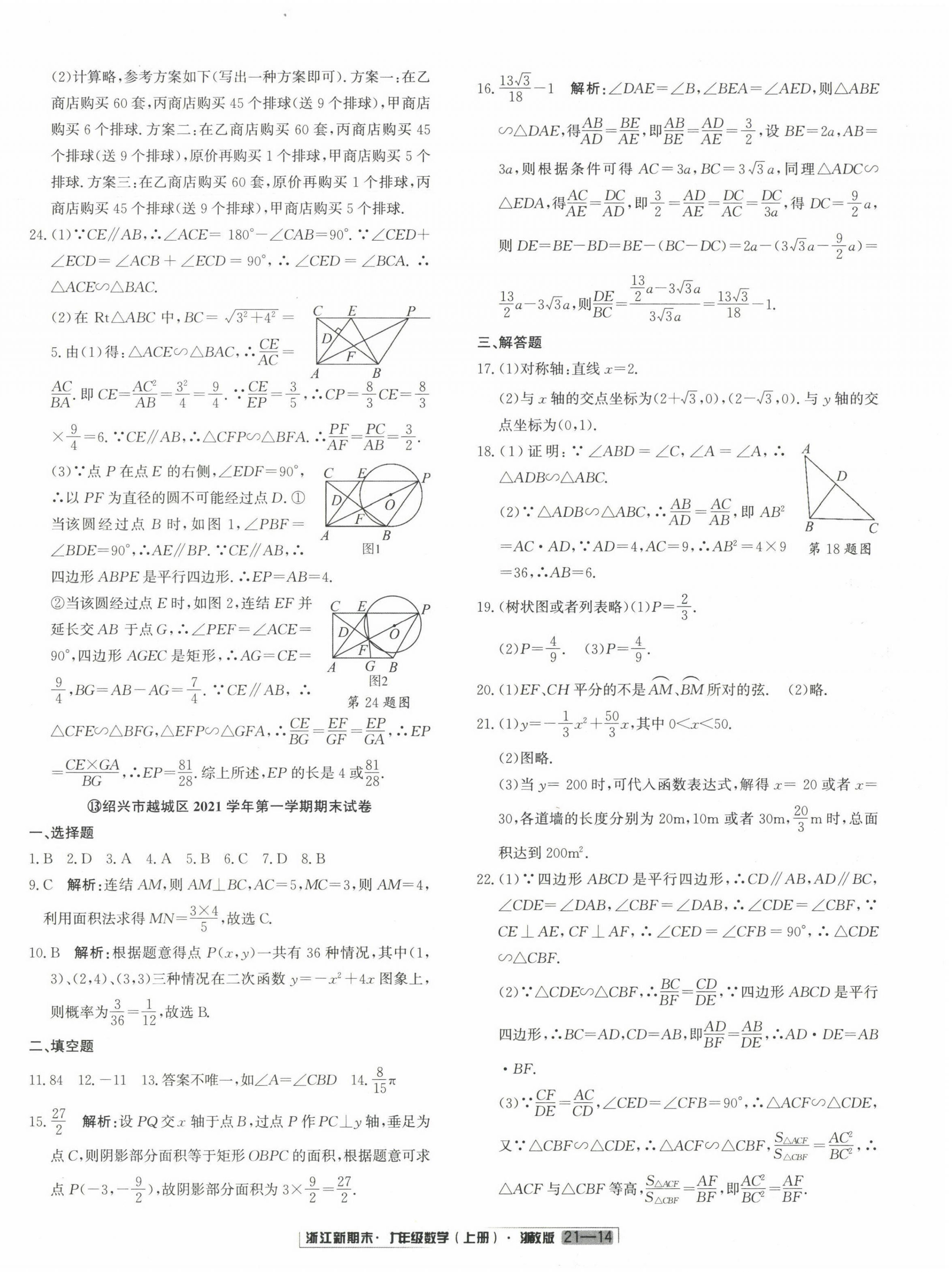 2022年励耘书业浙江新期末九年级数学上册浙教版