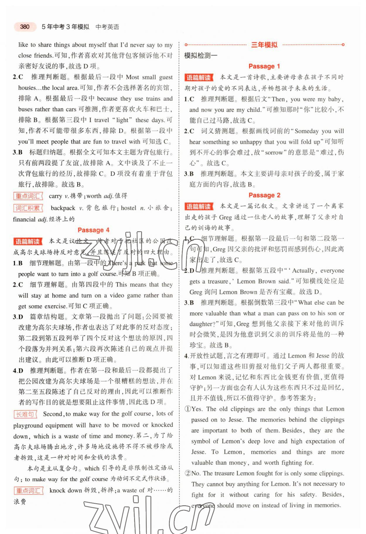 2023年5年中考3年模拟英语中考人教版浙江专版