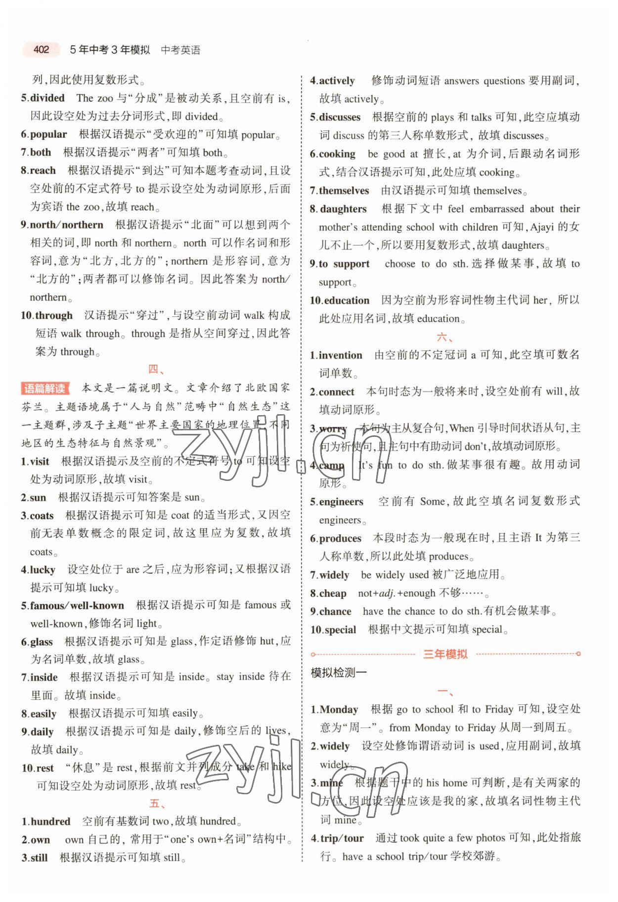 2023年5年中考3年模拟英语中考人教版浙江专版