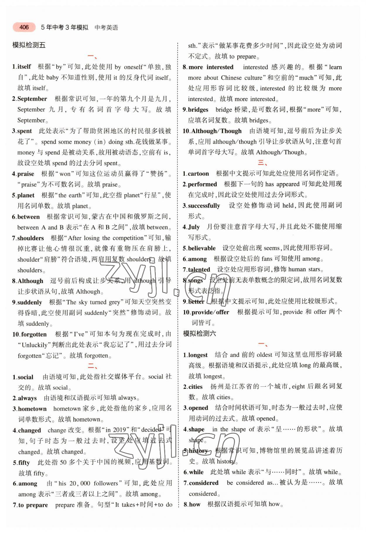 2023年5年中考3年模拟英语中考人教版浙江专版