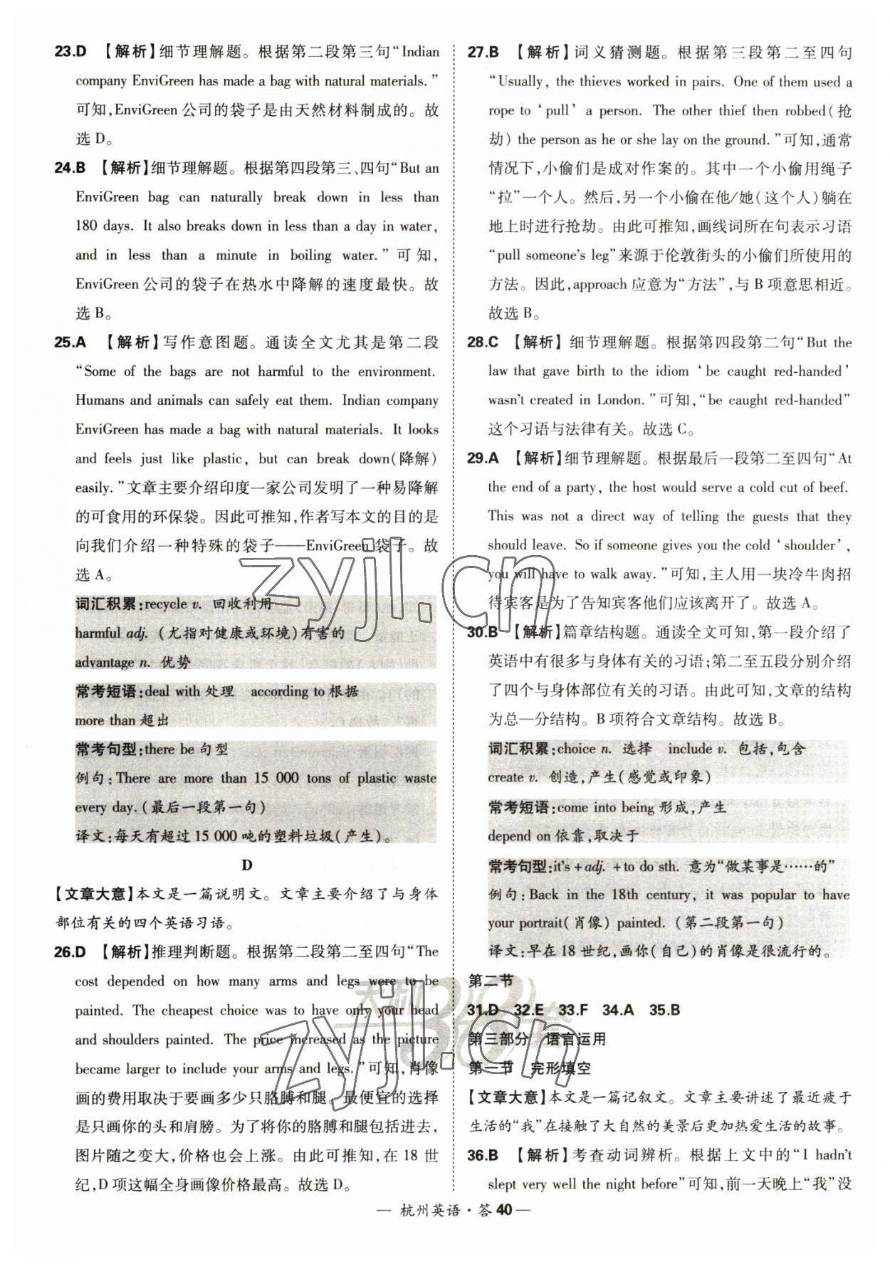 注:目前有些书本章节名称可能整理的还不是很完善,但都是按照顺序排列的,请同学们按照顺序仔细查找。练习册 2023年天利38套中考试题精选英语杭州专版 答案主要是用来给同学们做完题方便对答案用的,请勿直接抄袭。