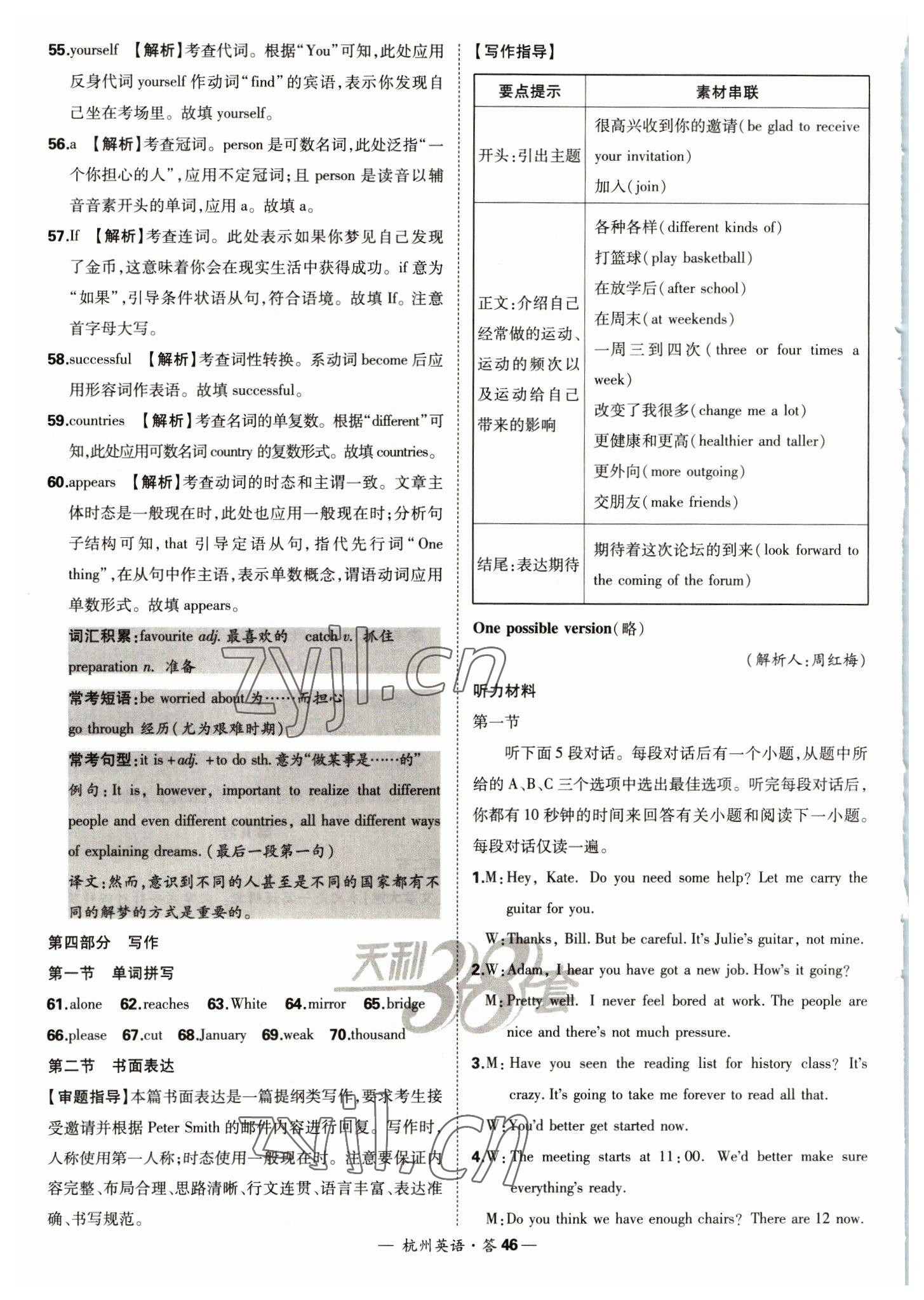 注:目前有些书本章节名称可能整理的还不是很完善,但都是按照顺序排列的,请同学们按照顺序仔细查找。练习册 2023年天利38套中考试题精选英语杭州专版 答案主要是用来给同学们做完题方便对答案用的,请勿直接抄袭。