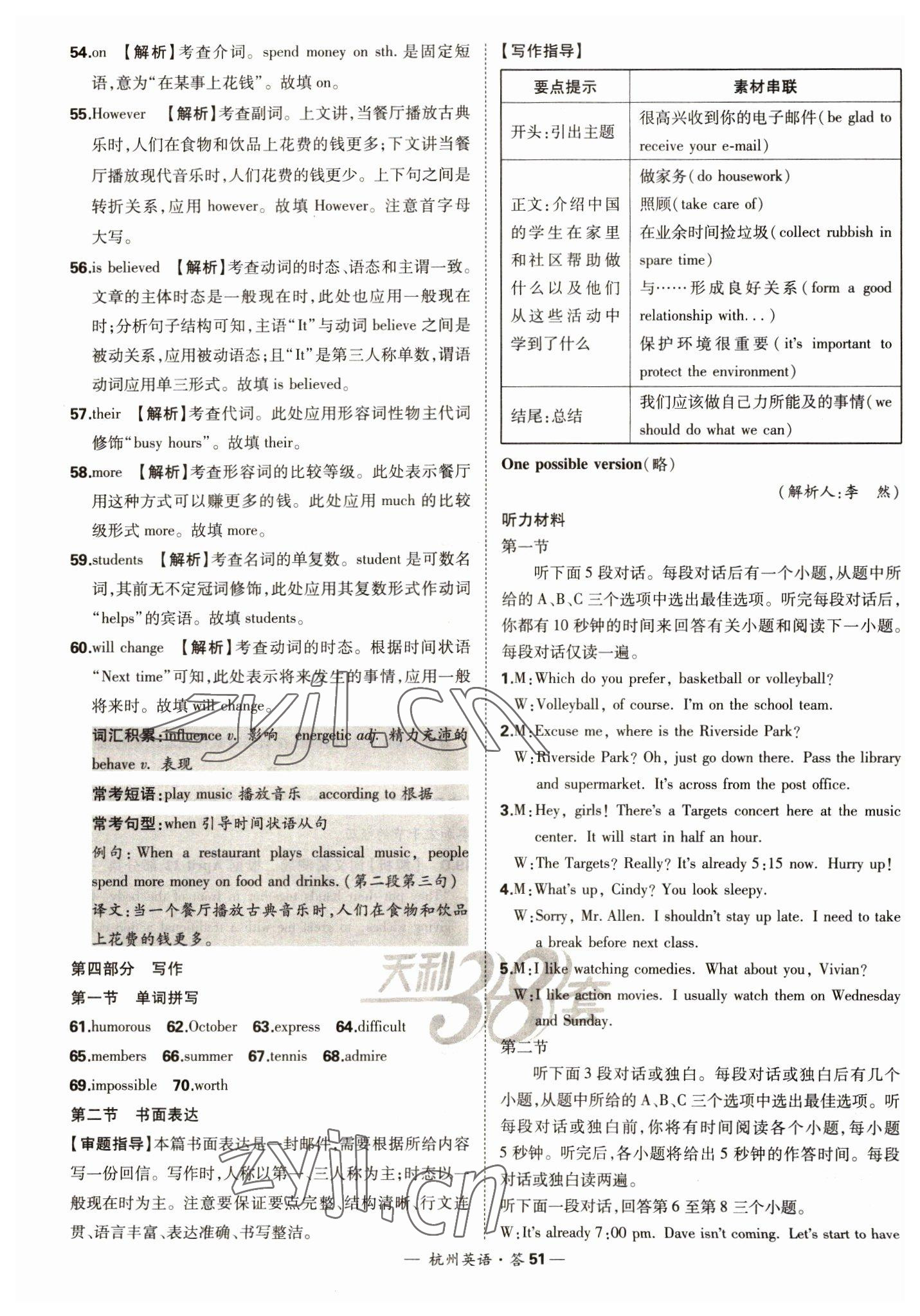 注:目前有些书本章节名称可能整理的还不是很完善,但都是按照顺序排列的,请同学们按照顺序仔细查找。练习册 2023年天利38套中考试题精选英语杭州专版 答案主要是用来给同学们做完题方便对答案用的,请勿直接抄袭。