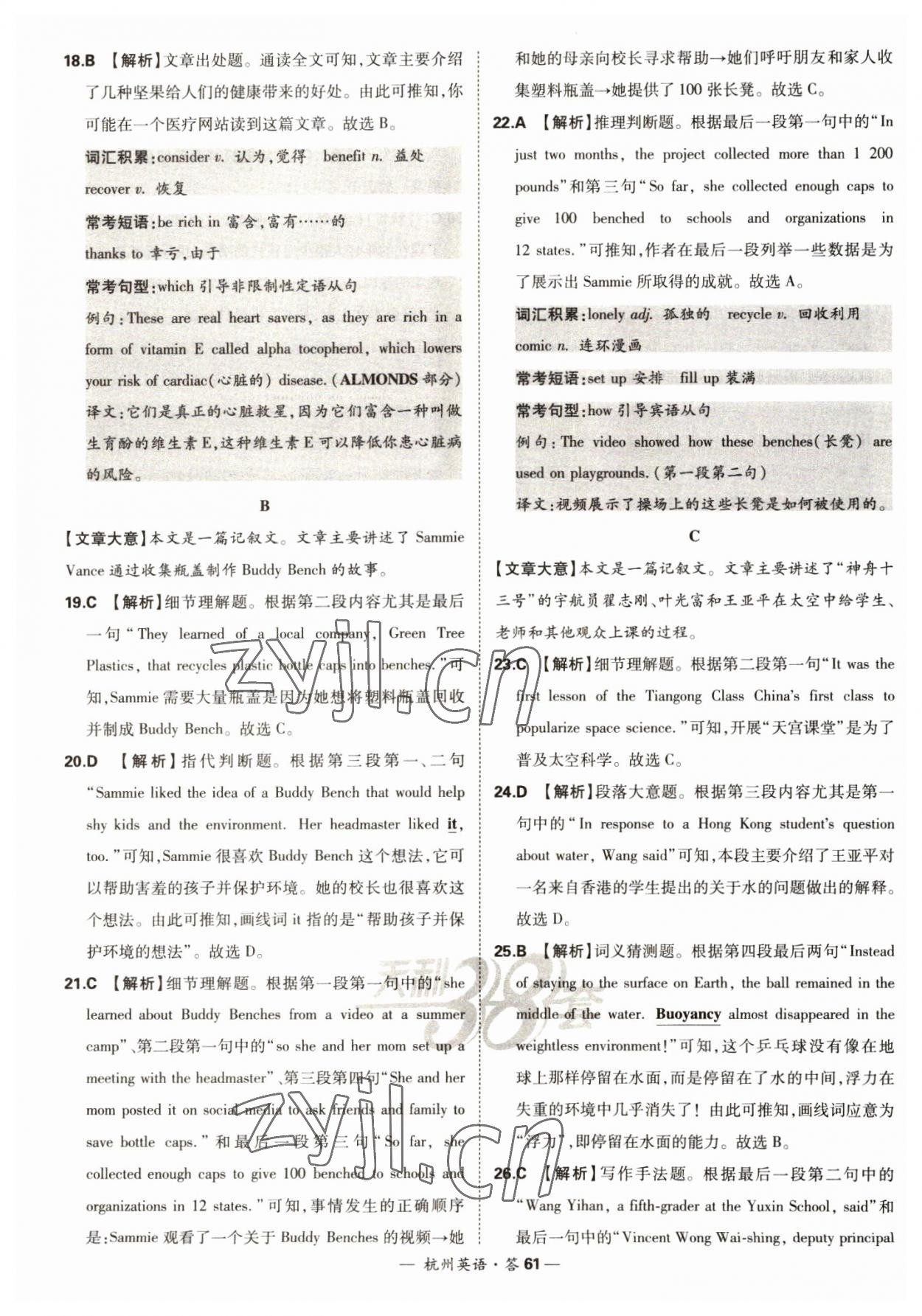 注:目前有些书本章节名称可能整理的还不是很完善,但都是按照顺序排列的,请同学们按照顺序仔细查找。练习册 2023年天利38套中考试题精选英语杭州专版 答案主要是用来给同学们做完题方便对答案用的,请勿直接抄袭。