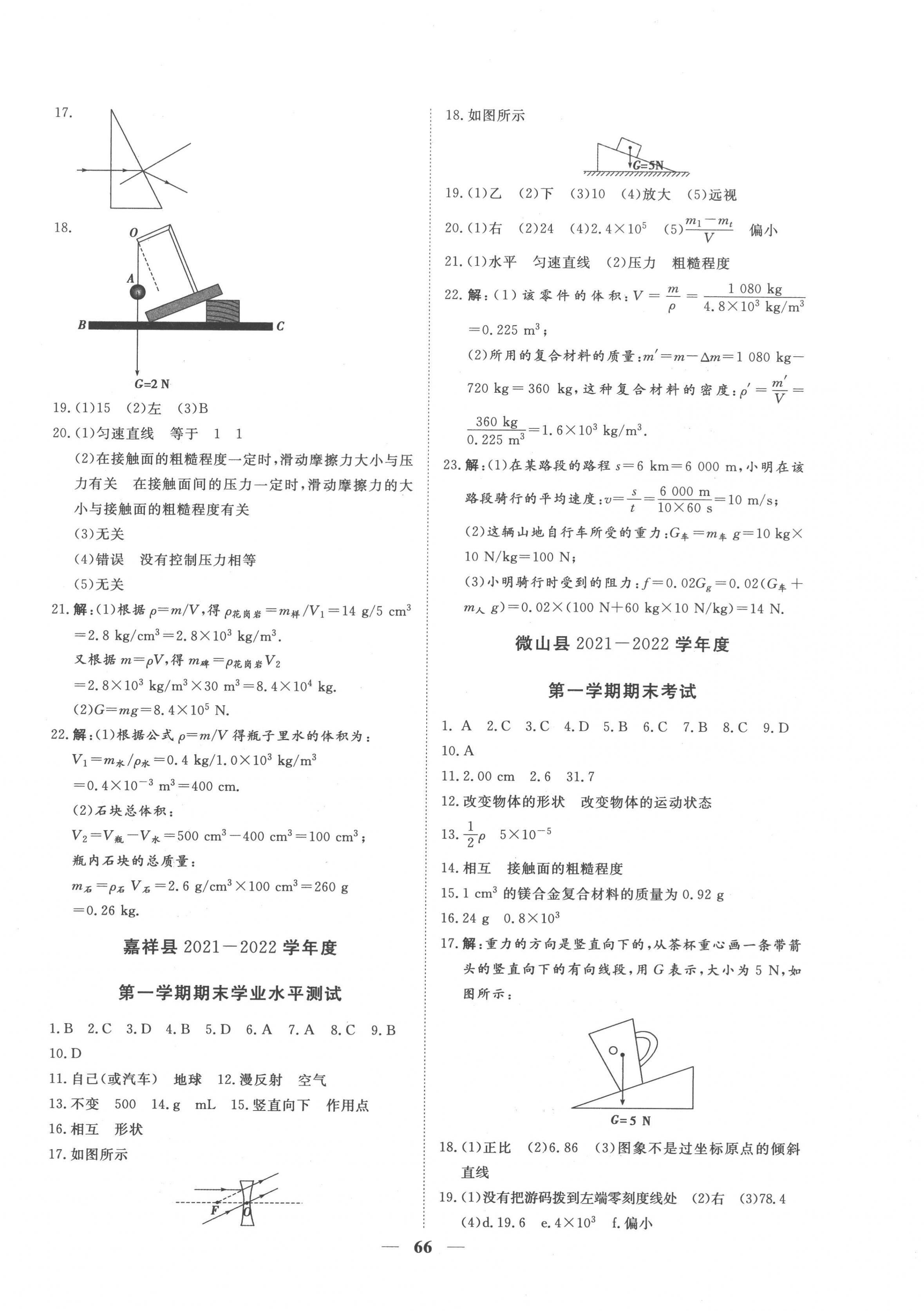 注:目前有些书本章节名称可能整理的还不是很完善,但都是按照顺序排列的,请同学们按照顺序仔细查找。练习册 2022年期末季济宁市各县市期末试题精选八年级物理上册沪科版济宁专版 答案主要是用来给同学们做完题方便对答案用的,请勿直接抄袭。