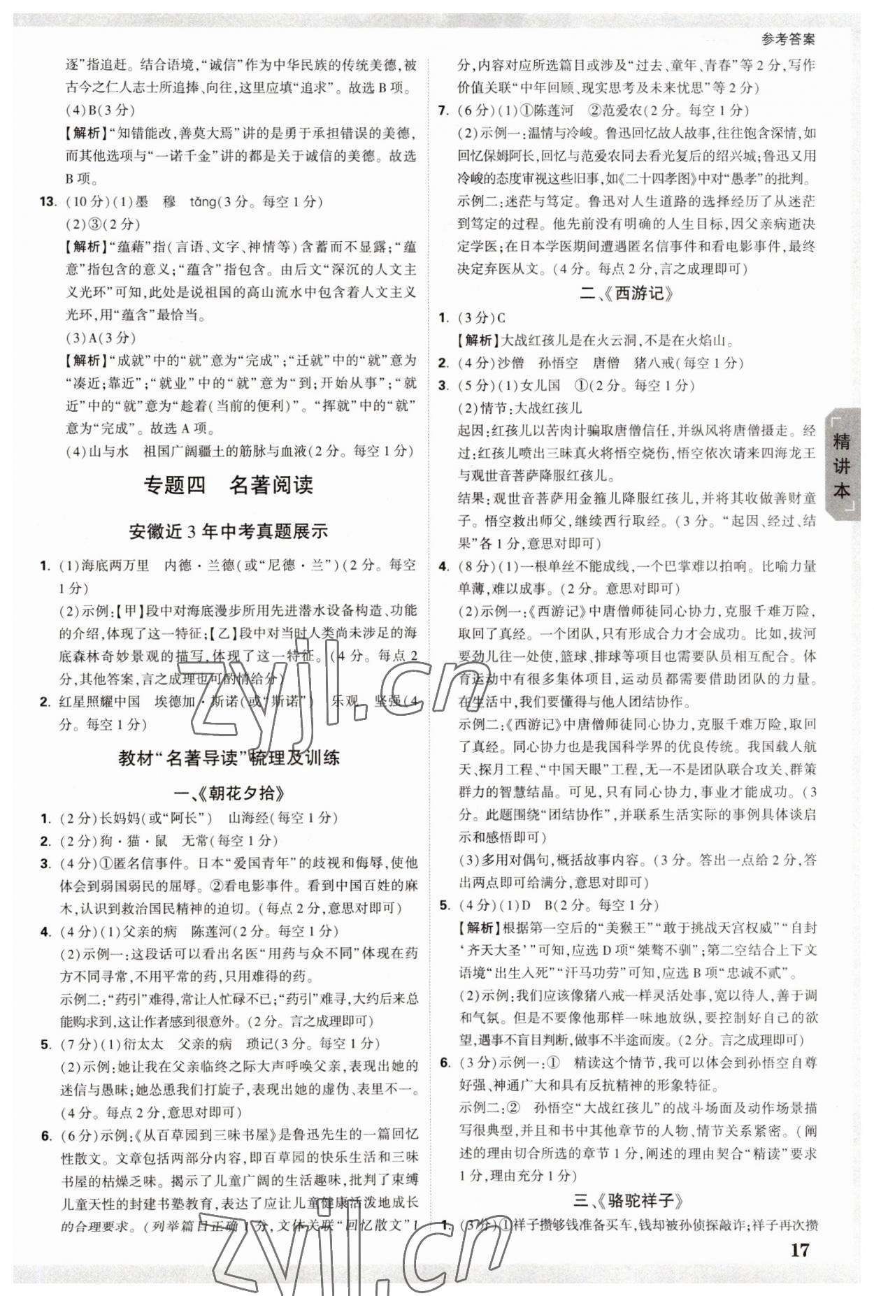 注:目前有些书本章节名称可能整理的还不是很完善,但都是按照顺序排列的,请同学们按照顺序仔细查找。练习册 2023年万唯中考试题研究语文中考安徽专版 答案主要是用来给同学们做完题方便对答案用的,请勿直接抄袭。