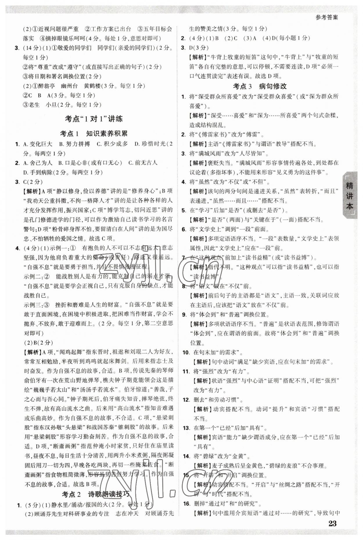 注:目前有些书本章节名称可能整理的还不是很完善,但都是按照顺序排列的,请同学们按照顺序仔细查找。练习册 2023年万唯中考试题研究语文中考安徽专版 答案主要是用来给同学们做完题方便对答案用的,请勿直接抄袭。