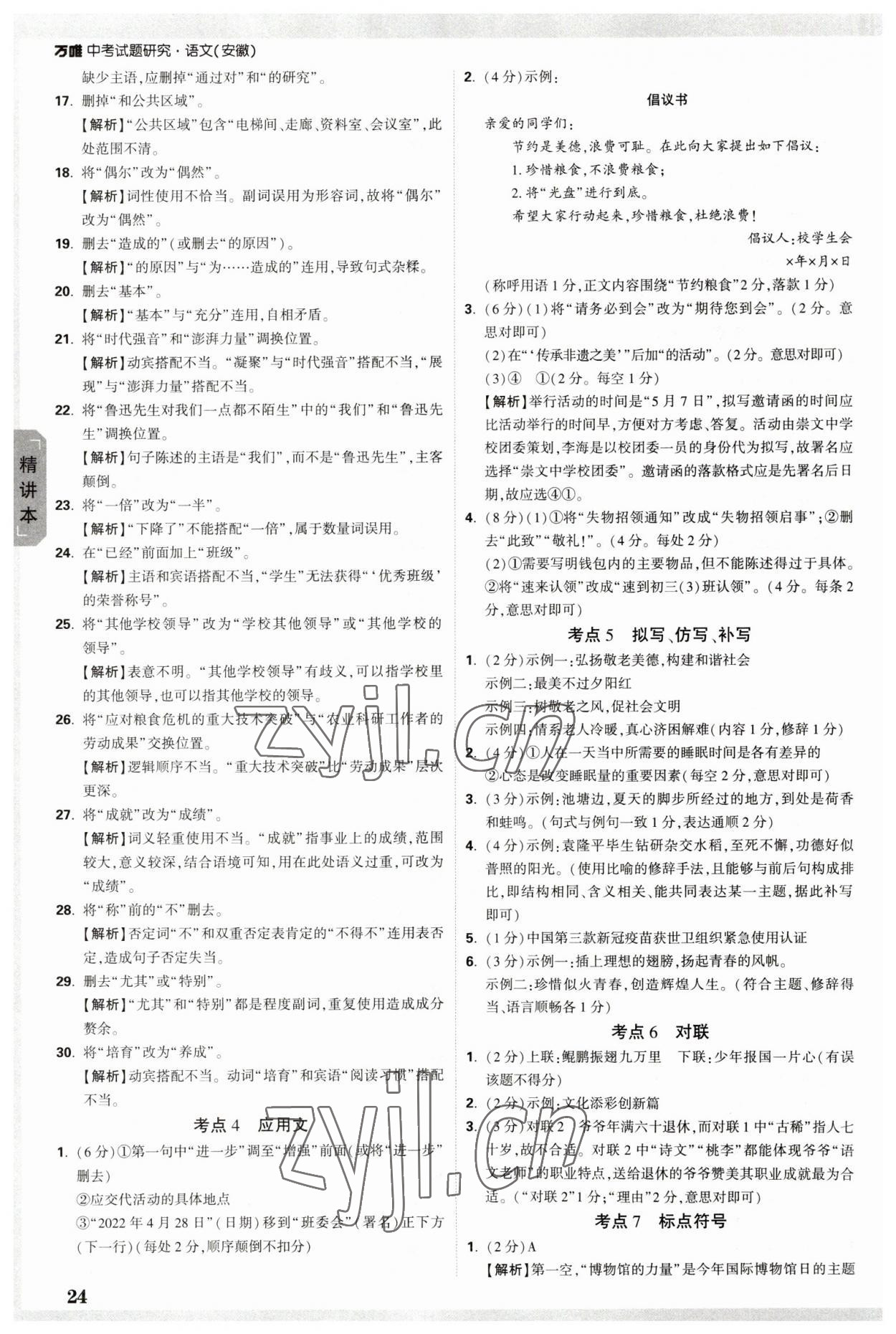 注:目前有些书本章节名称可能整理的还不是很完善,但都是按照顺序排列的,请同学们按照顺序仔细查找。练习册 2023年万唯中考试题研究语文中考安徽专版 答案主要是用来给同学们做完题方便对答案用的,请勿直接抄袭。