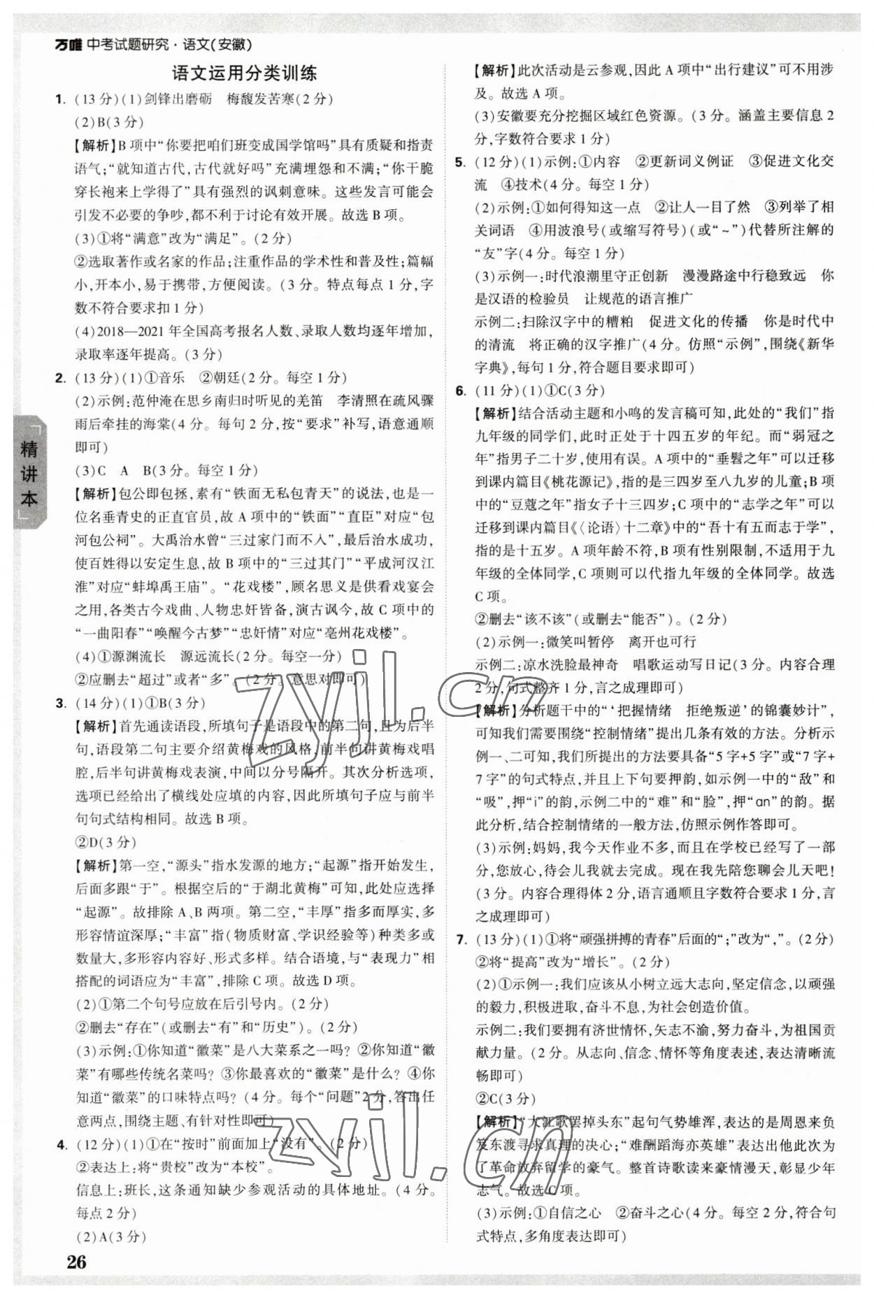 注:目前有些书本章节名称可能整理的还不是很完善,但都是按照顺序排列的,请同学们按照顺序仔细查找。练习册 2023年万唯中考试题研究语文中考安徽专版 答案主要是用来给同学们做完题方便对答案用的,请勿直接抄袭。