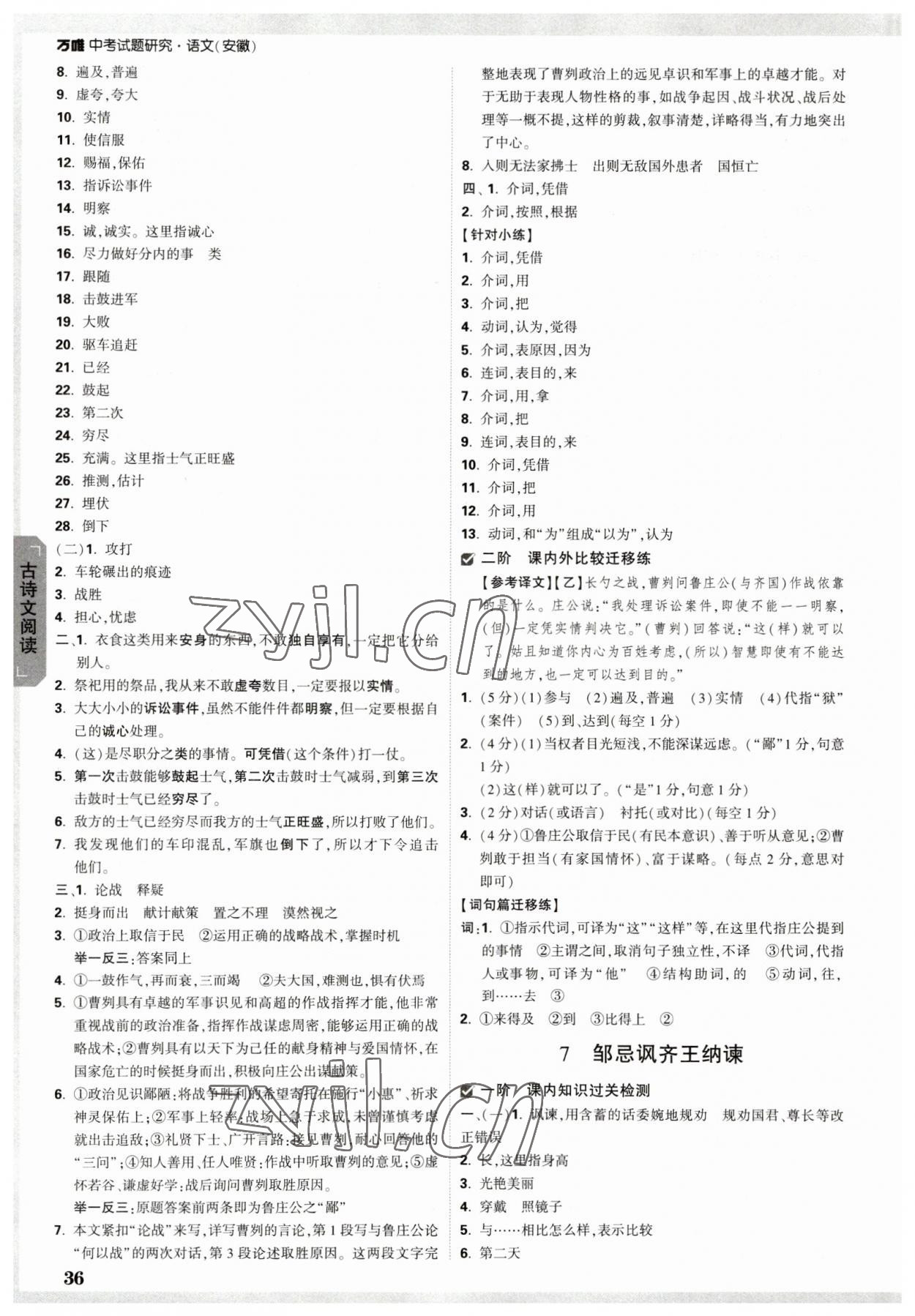2023年万唯中考试题研究语文中考安徽专版