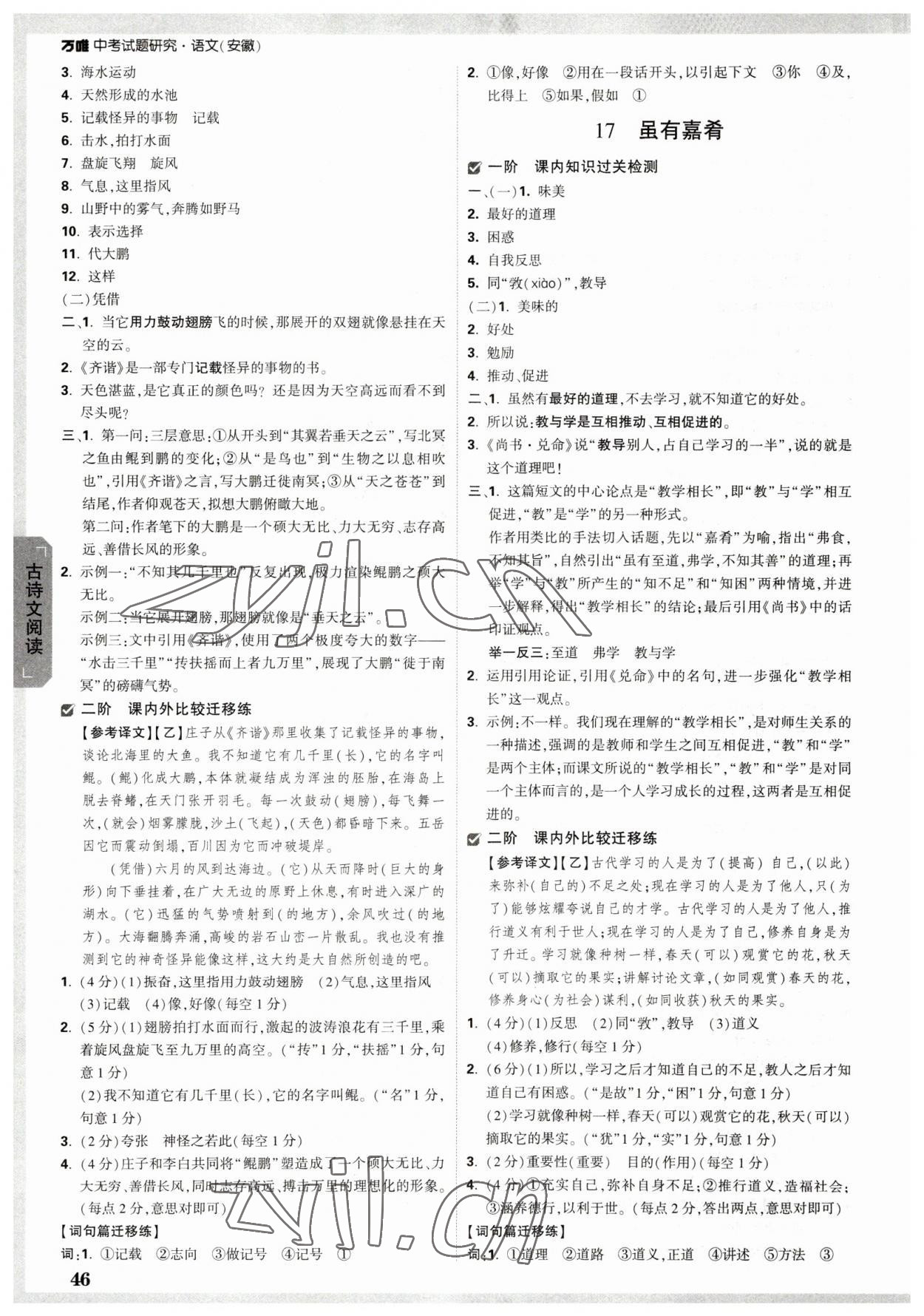 注:目前有些书本章节名称可能整理的还不是很完善,但都是按照顺序排列的,请同学们按照顺序仔细查找。练习册 2023年万唯中考试题研究语文中考安徽专版 答案主要是用来给同学们做完题方便对答案用的,请勿直接抄袭。