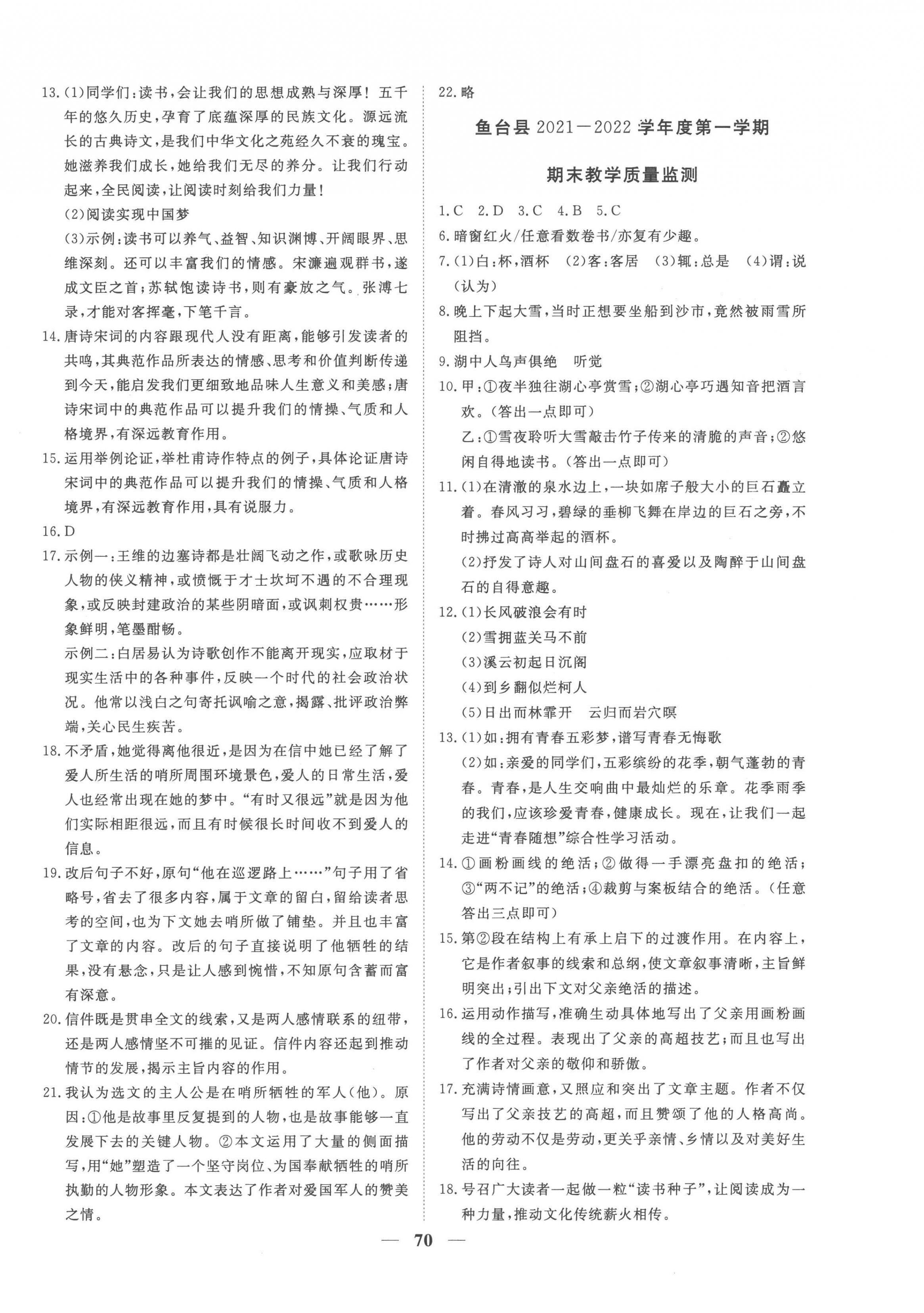注:目前有些书本章节名称可能整理的还不是很完善,但都是按照顺序排列的,请同学们按照顺序仔细查找。练习册 2022年期末季济宁市各县市期末试题精选九年级语文上册人教版济宁专版 答案主要是用来给同学们做完题方便对答案用的,请勿直接抄袭。