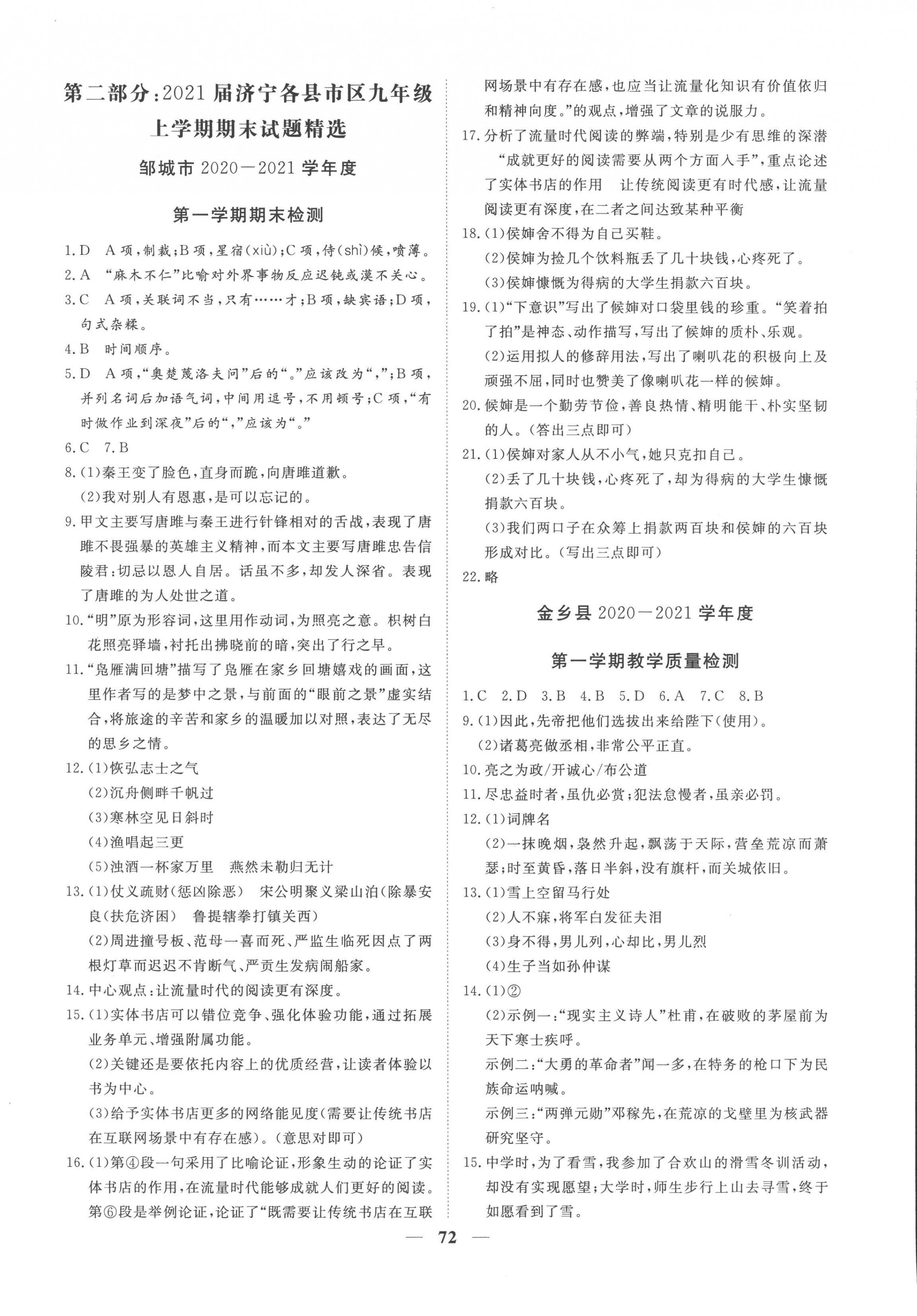 2022年期末季济宁市各县市期末试题精选九年级语文上册人教版济宁专版