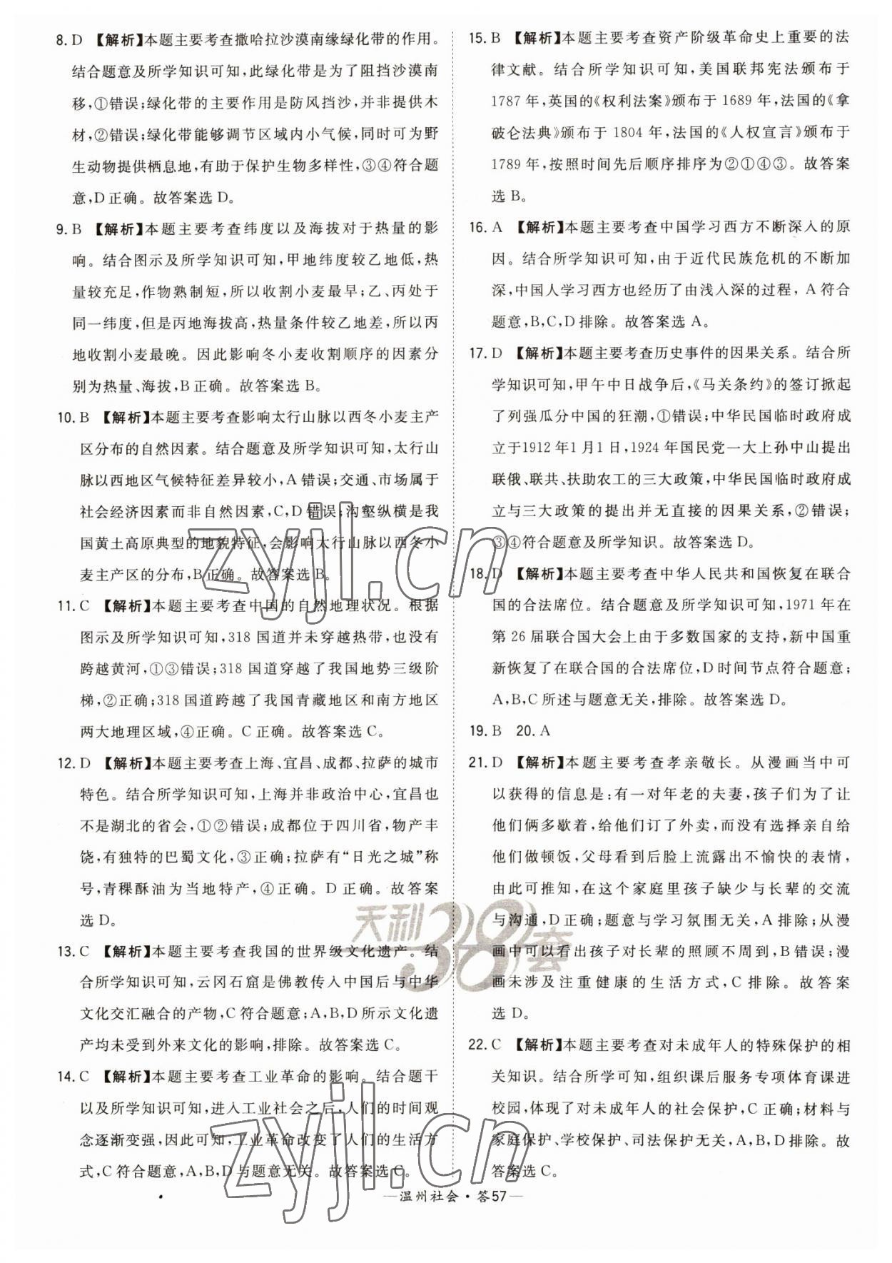 注:目前有些书本章节名称可能整理的还不是很完善,但都是按照顺序排列的,请同学们按照顺序仔细查找。练习册 2023年天利38套中考试题精选九年级历史温州专版 答案主要是用来给同学们做完题方便对答案用的,请勿直接抄袭。