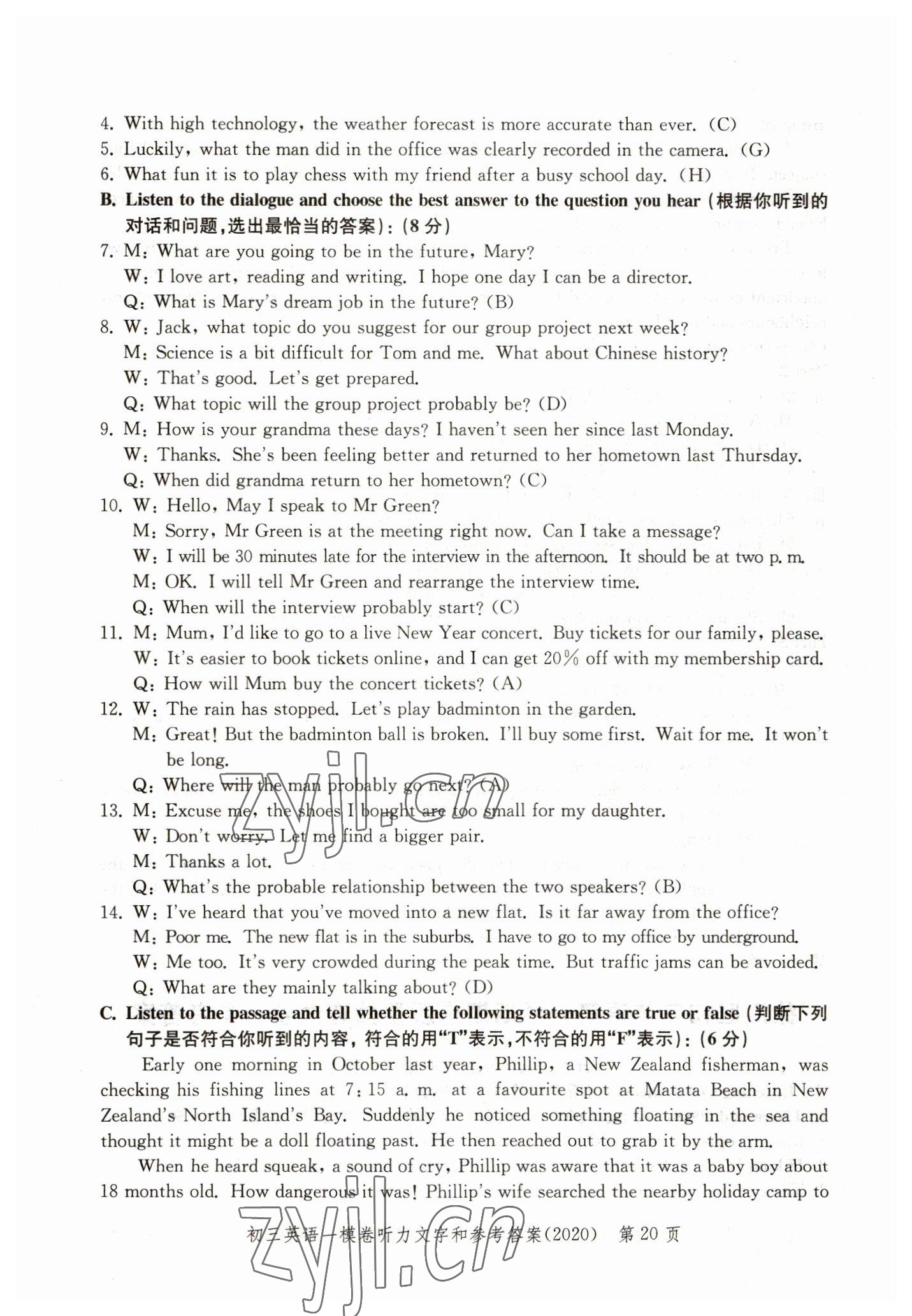 - 参考答案第20页