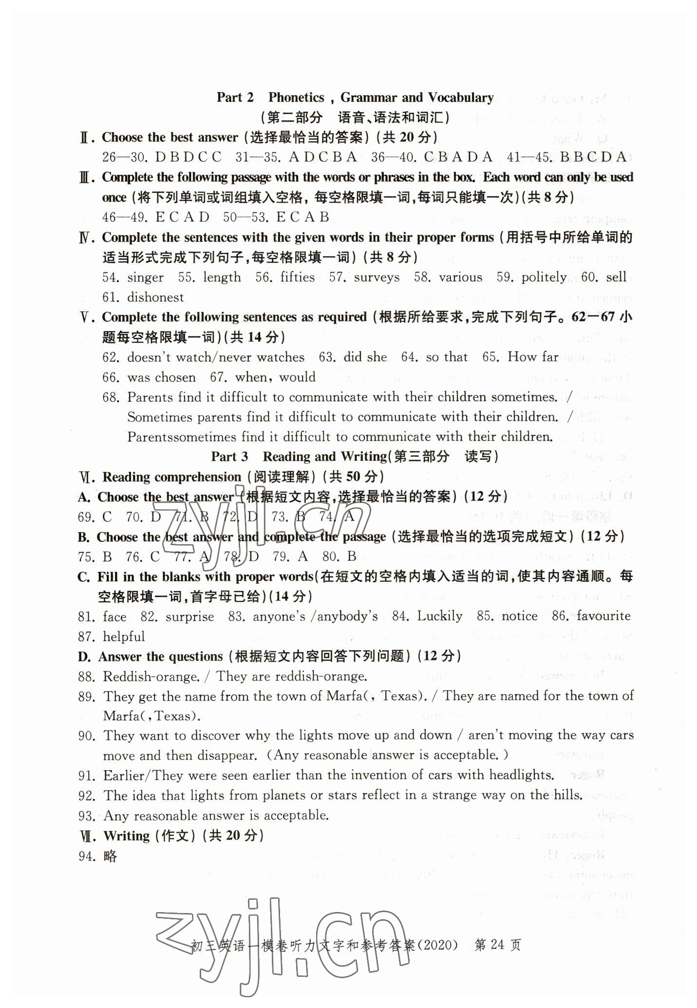 - 参考答案第20页