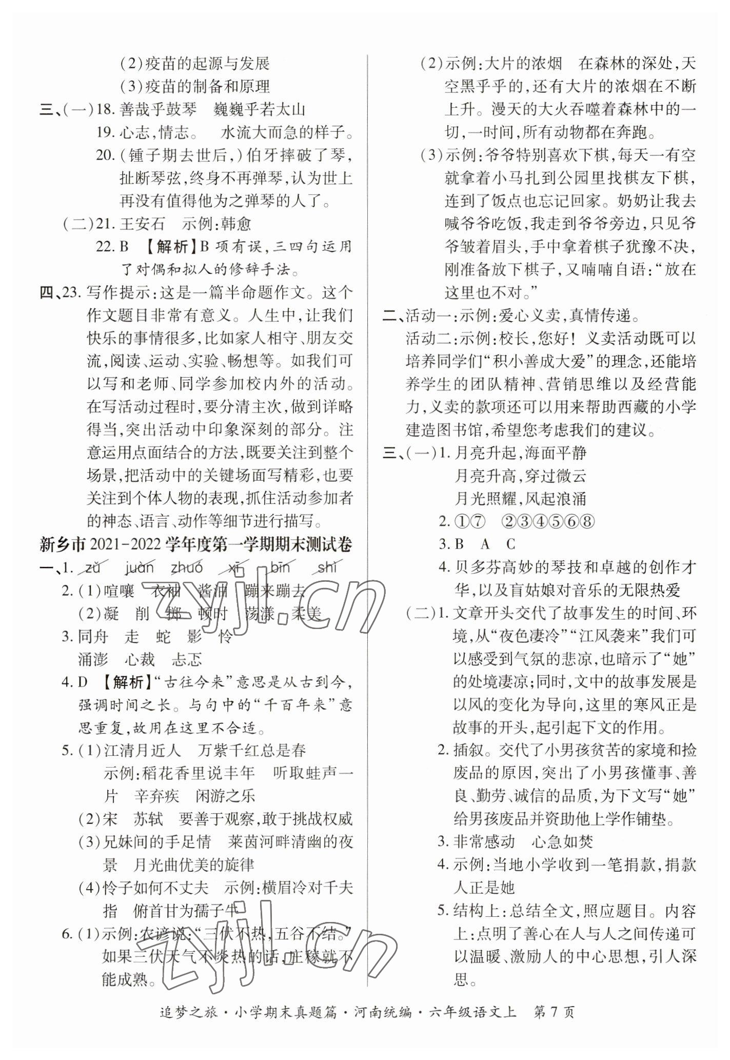 2022年追梦之旅小学期末真题篇六年级语文上册人教版河南专版