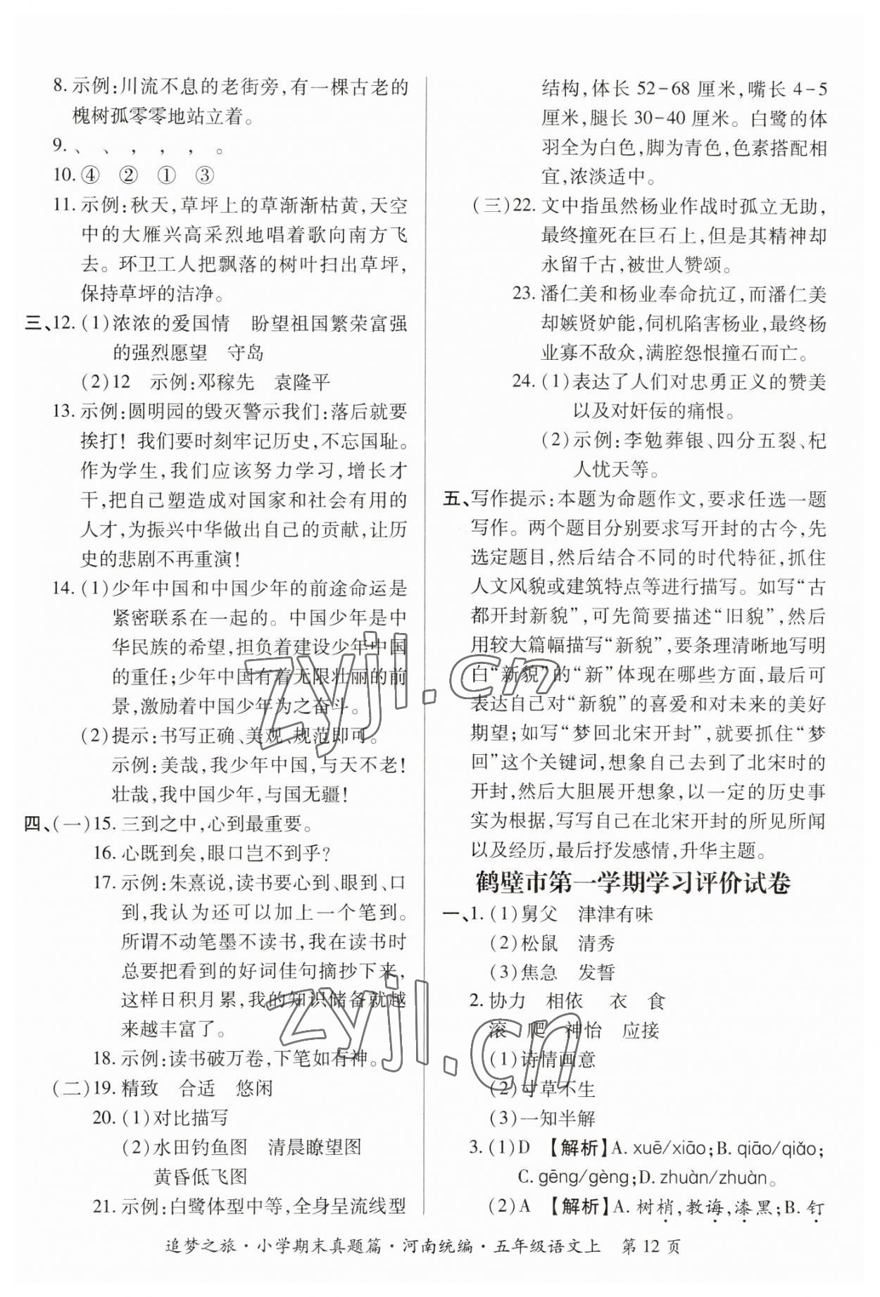 2022年追梦之旅小学期末真题篇五年级语文上册人教版河南专版