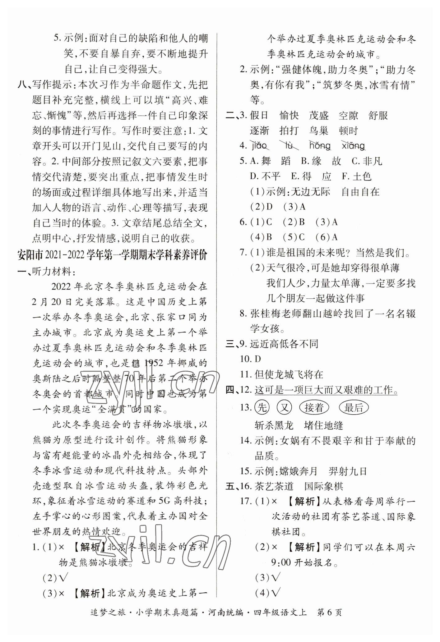 2022年追梦之旅小学期末真题篇四年级语文上册人教版河南专版