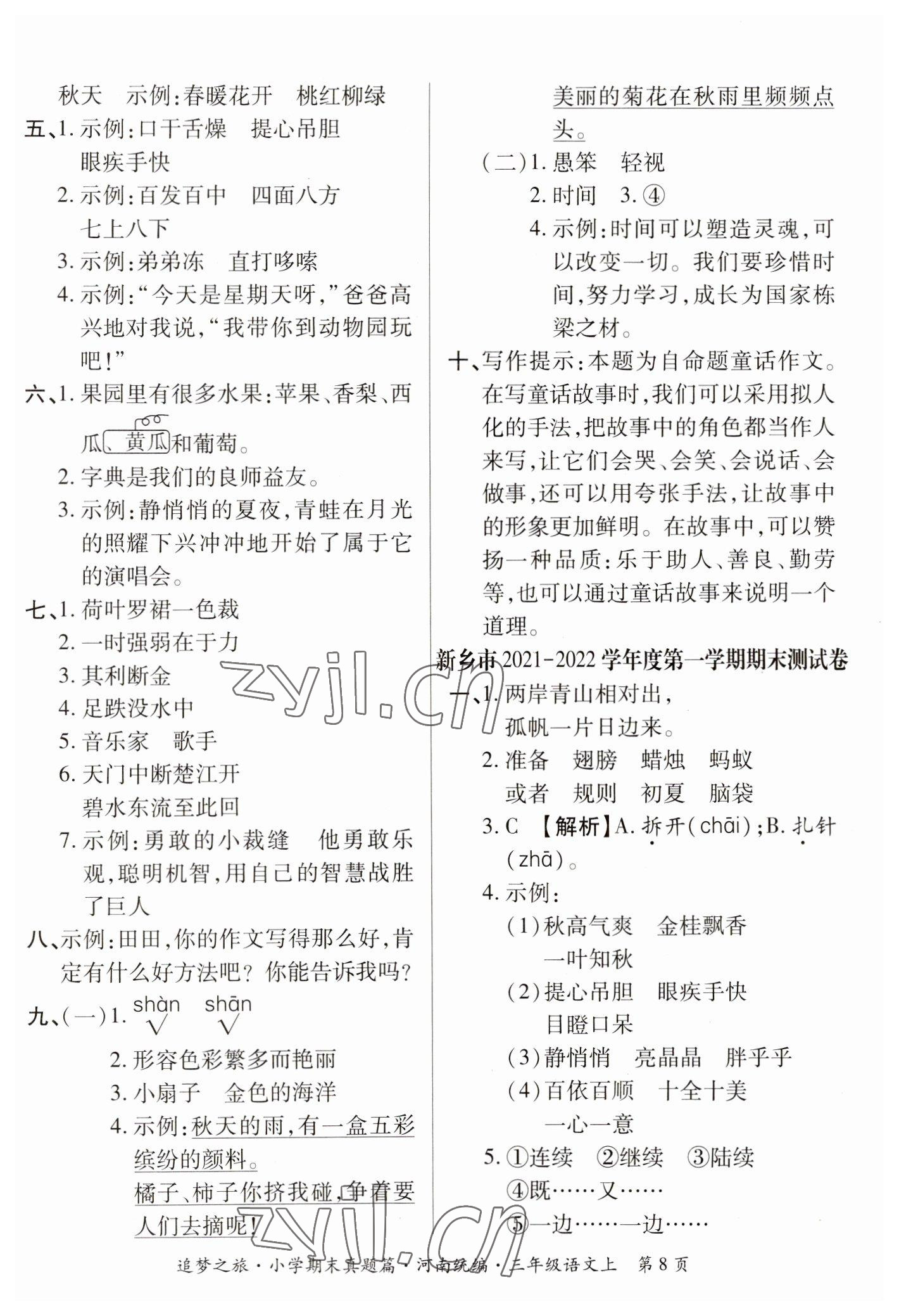 2022年追梦之旅小学期末真题篇三年级语文上册人教版河南专版