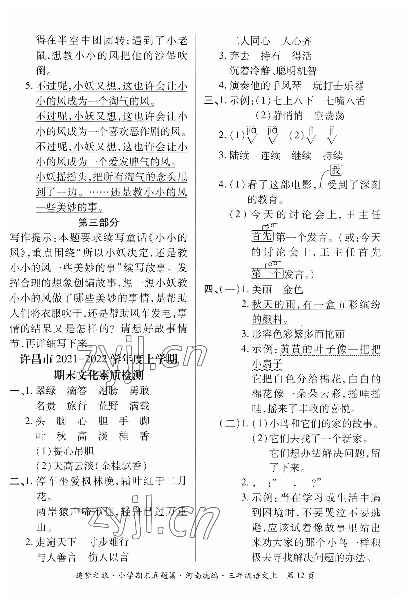 2022年追梦之旅小学期末真题篇三年级语文上册人教版河南专版