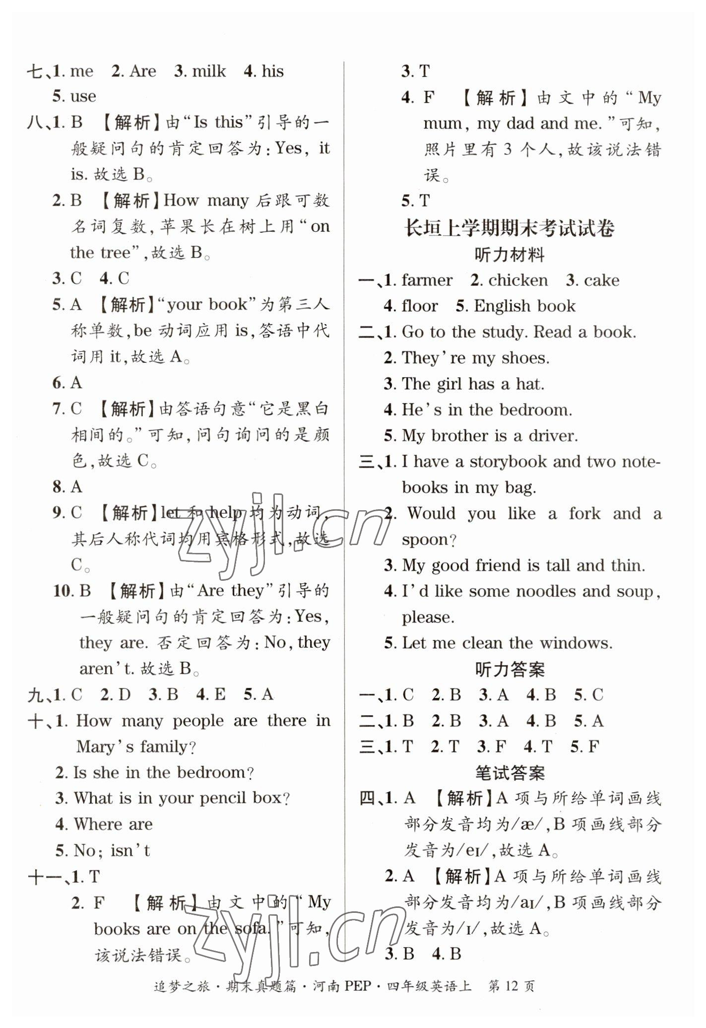 注:目前有些书本章节名称可能整理的还不是很完善,但都是按照顺序排列的,请同学们按照顺序仔细查找。练习册 2022年追梦之旅小学期末真题篇四年级英语上册人教版河南专版 答案主要是用来给同学们做完题方便对答案用的,请勿直接抄袭。
